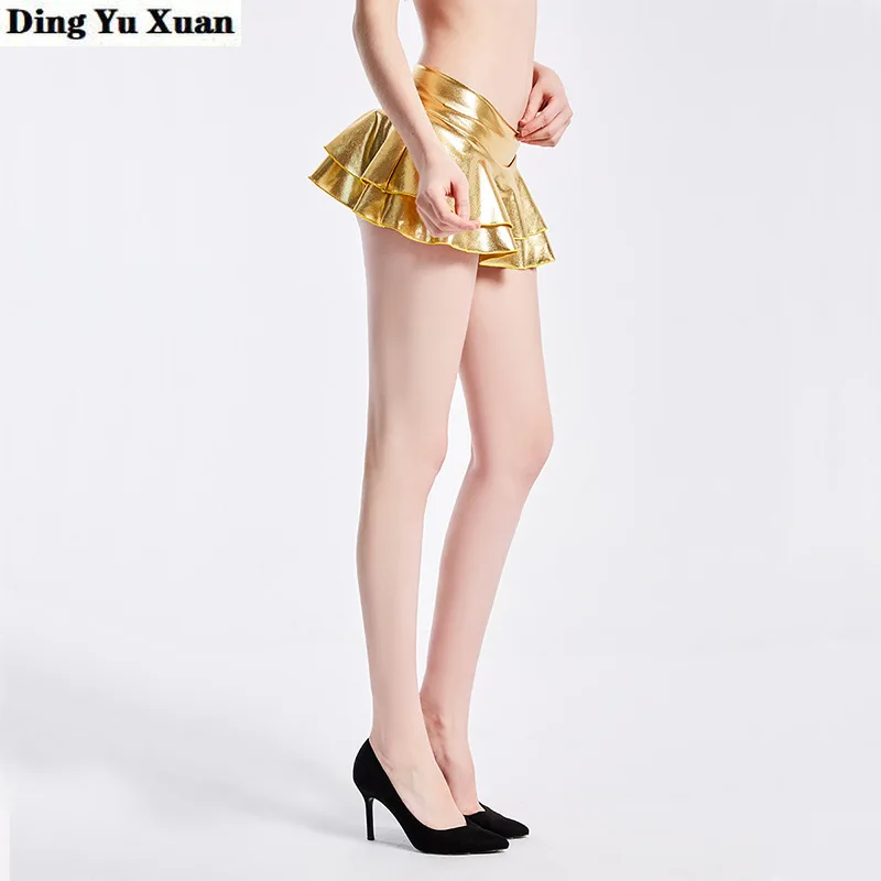 Женская Блестящая трапециевидная плиссированная ультракороткая юбка с оборками, женская сексуальная одежда для вечерние и сцены, мини микро-юбки, Женская юбка для ночного клуба