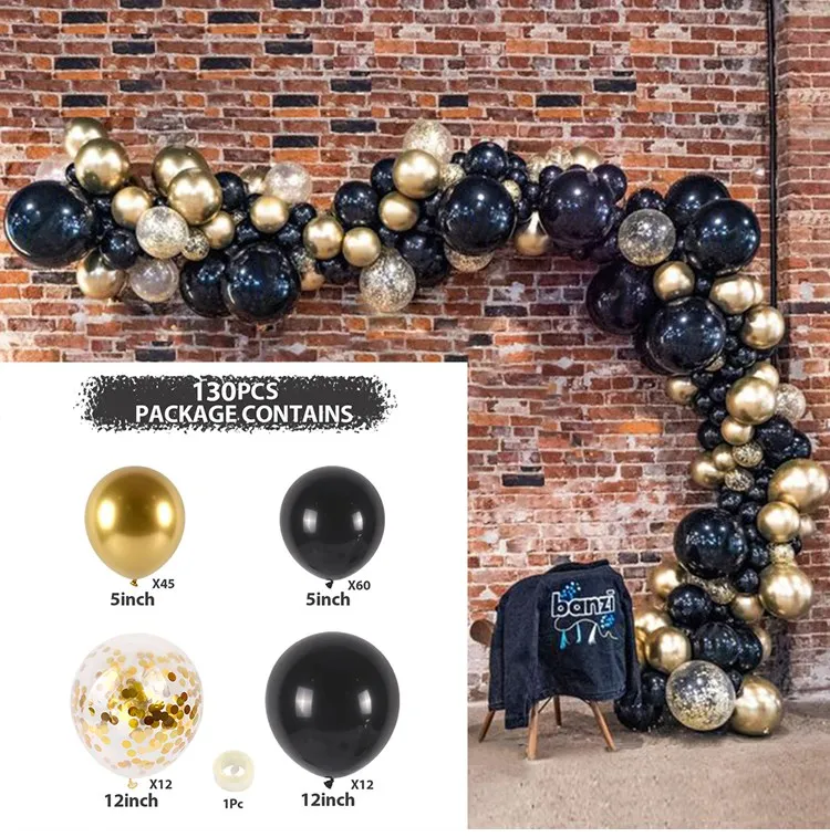 Черная Золотая гирлянда с воздушными шарами, украшение для дня рождения, детский праздничный декор из латекса для выпускного вечера, декор для свадьбы, дня рождения