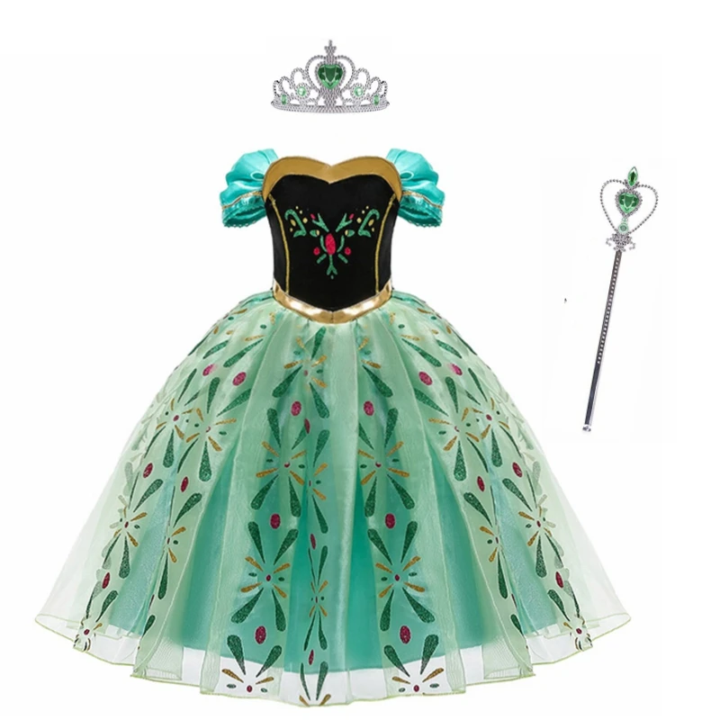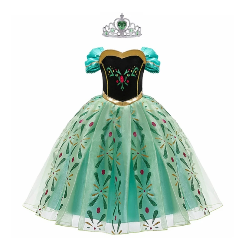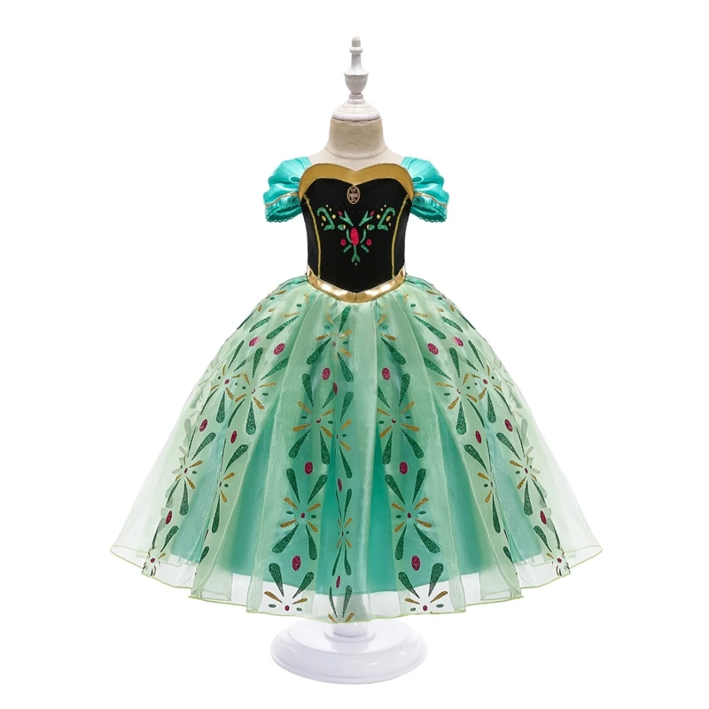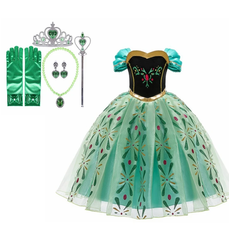 Платье Анны для девочек, платья принцессы на день рождения, костюм для косплея на Хэллоуин для младенцев, красивое зеленое платье, фантазия Анна