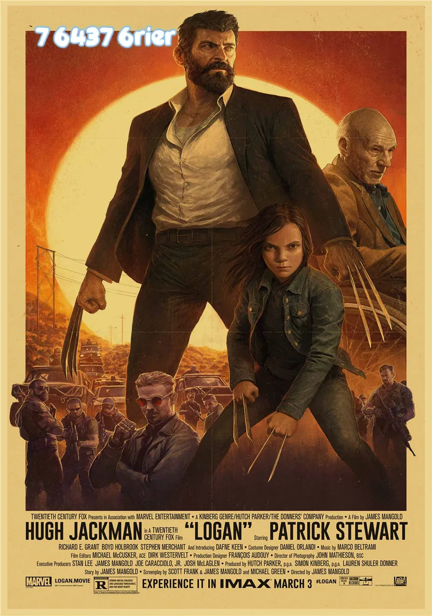 Ретро стиль с героями комиксов Марвел, классический фильм X-Для мужчин Происхождение: Росомахи из серии супергероев Мстители крафт Бумага плакат, ручной стержень, для кафе, для стены Стикеры