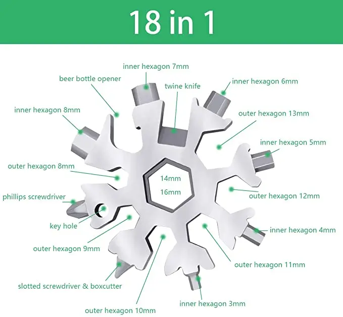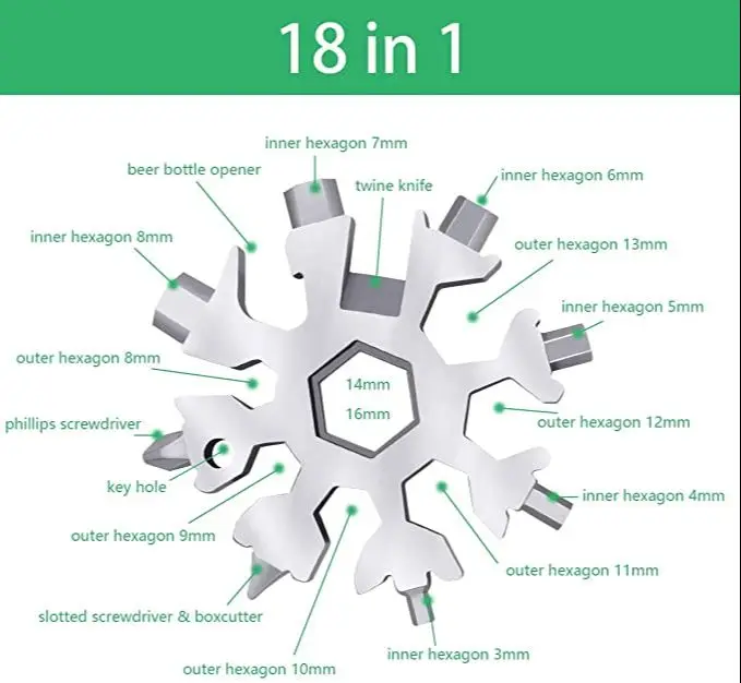 Портативный гаечный ключ 18 в 1 со снежинками, многофункциональные ...