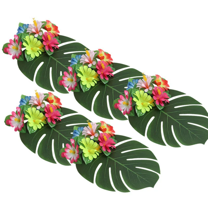 12 В/24pcs тропические искусственных пальмовых листьев листвы из джунглей Гавайскую Для летних вечеринок украшение стола аксессуары Искусственные листья1,92/Шт/Лот 1