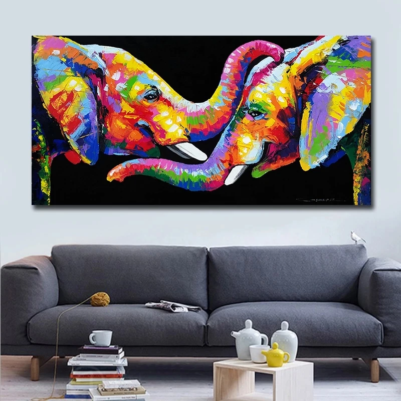 Красочный живопись маслом Кот холст абстрактная живопись Настенная ...