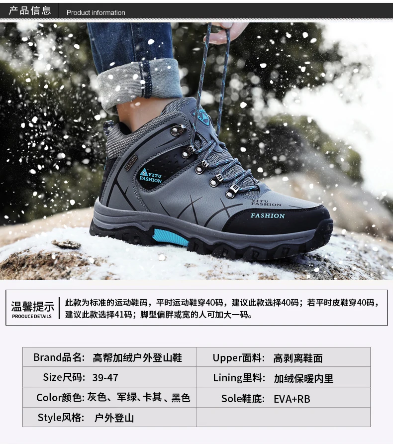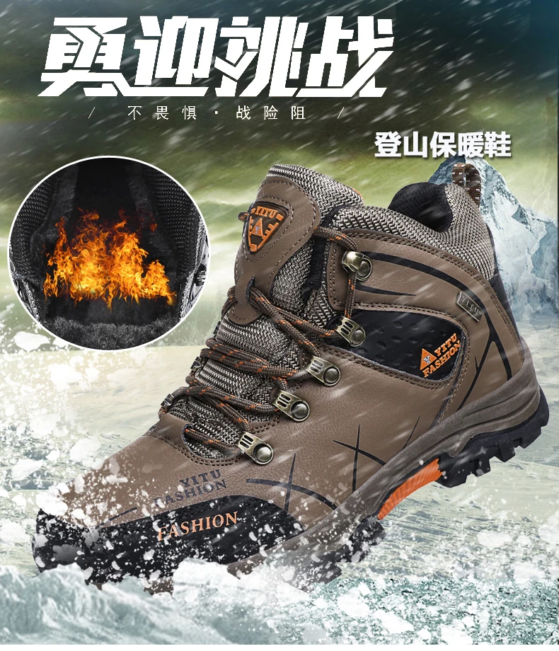 Мужские уличные ботинки для скалолазания, бархатные теплые высокие ...