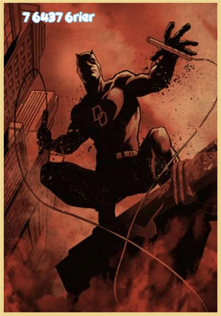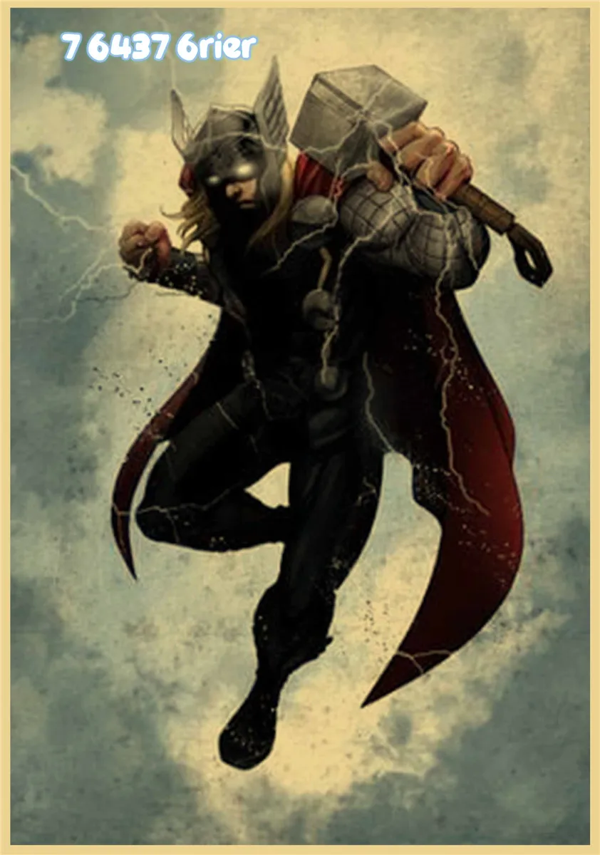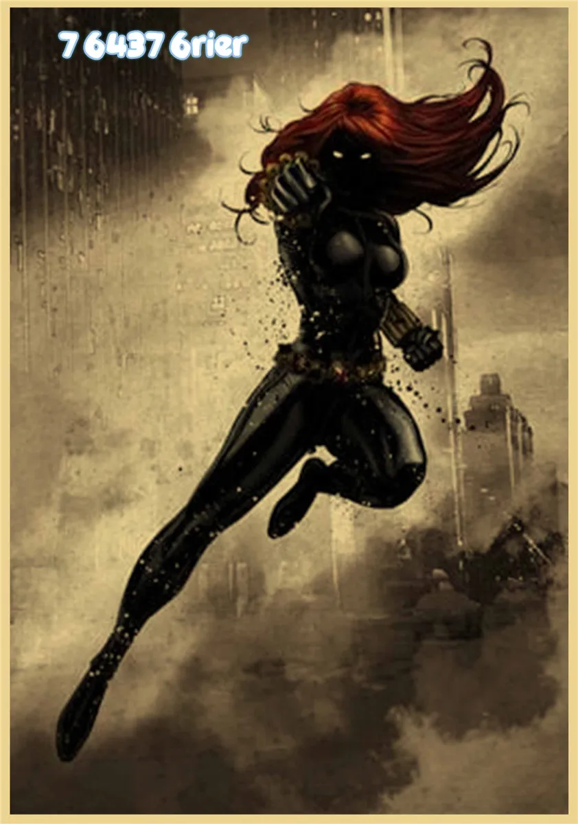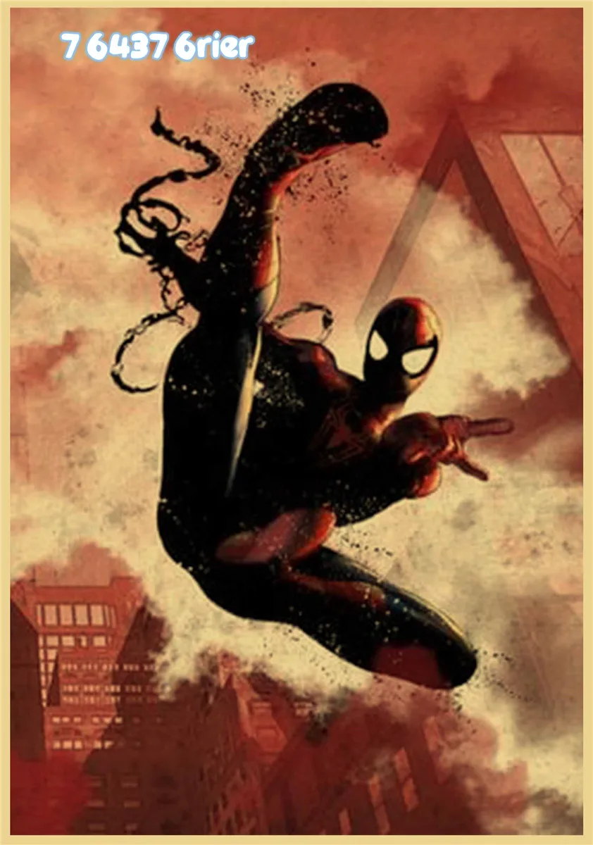 Ретро-постер в стиле Marvel Dark, наклейки на стену в стиле арт-деко, супергерой, Мстители, Железный человек, Человек-паук, Капитан Америка