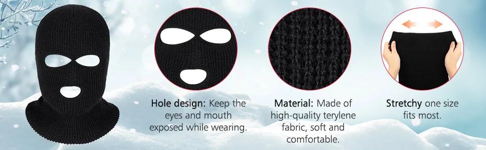 Новый дизайн: чехол для лица предназначен с 3 отверстиями, которые делают ваши глаза и рот остаются снаружи при ношении, защищают ваше лицо и делают вас комфортноНеобходимые товары: Балаклава на открытом воздухе может держать голову и лицо вдали от солнца в жаркие дни, также может держать вас в тепле в холодные дни, что необходимо для мужчин и женщинЛегко сочетать: на открытом воздухе Чехлы для лица имеют различные цвета на ваш выбор, все эти цвета являются классическими и легко сочетаются с различными нарядами, делают вас разными каждый деньКачественный материал: трикотажная Балаклава изготовлена из полиэстера, который мягкий и эластичный, обеспечивает вам комфортное ношение даже в течение длительного времениШирокий спектр использования: лицевые крышки подходят для различных случаев, таких как рыбалка, Велоспорт, бег, катание на лыжах, альпинизм, шопинг, туризм и многое другое, эти Балаклавы для лица-хорошие подарки для ваших друзей или семьи, особенно подходят для любителей активного отдыха