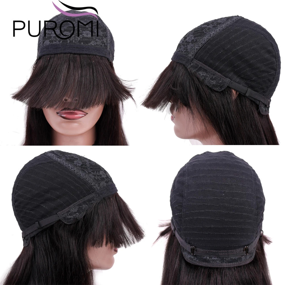 Прямые человеческие волосы Puromi, парики с челкой, длинные волосы, натуральные черные бразильские человеческие волосы, не Реми, парик полностью машинной работы 10 ''-28''