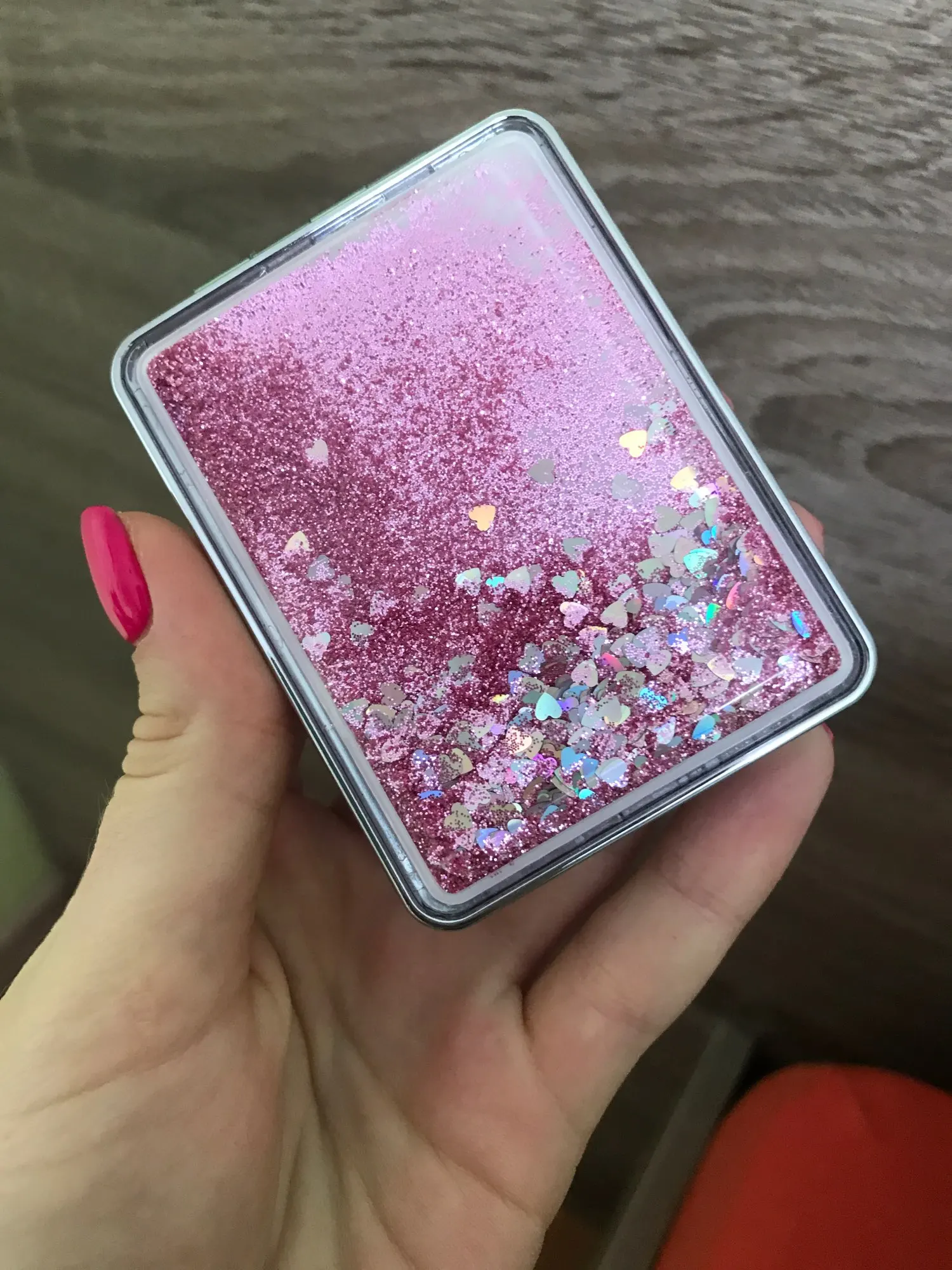 Зеркало для макияжа с блестящими зыбучими песками, портативное увеличительное квадратное зеркало для макияжа, складное карманное зеркало, милое компактное зеркало для девушек