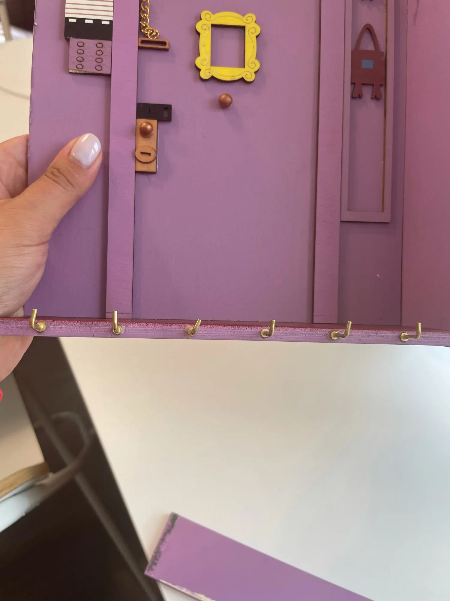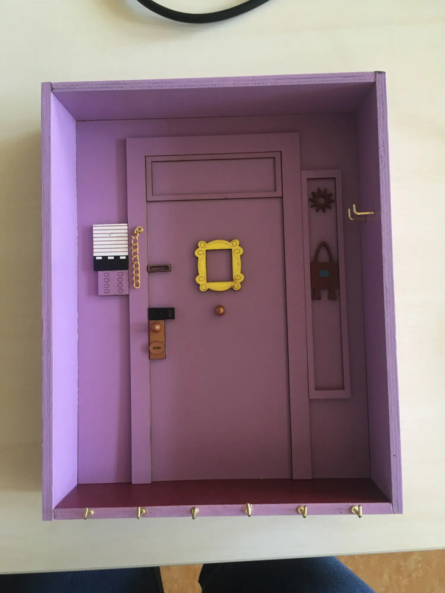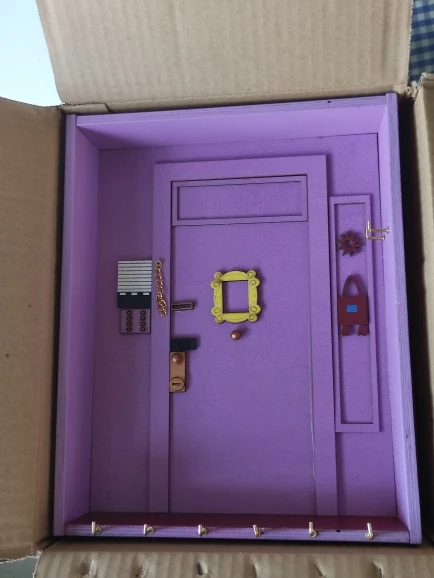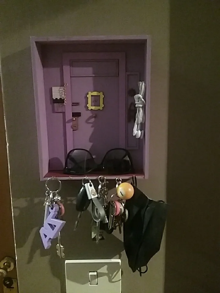 Я большой поклонник друзей, поэтому мне это нравится, но мне нужно было приклеить дверную ручку назад, а также дверной стул. Он изготовлен из довольно тонкой древесины, поэтому может быть не подходит большое количество тяжелых ключей. Прибыл довольно быстро в Новую Зеландию
