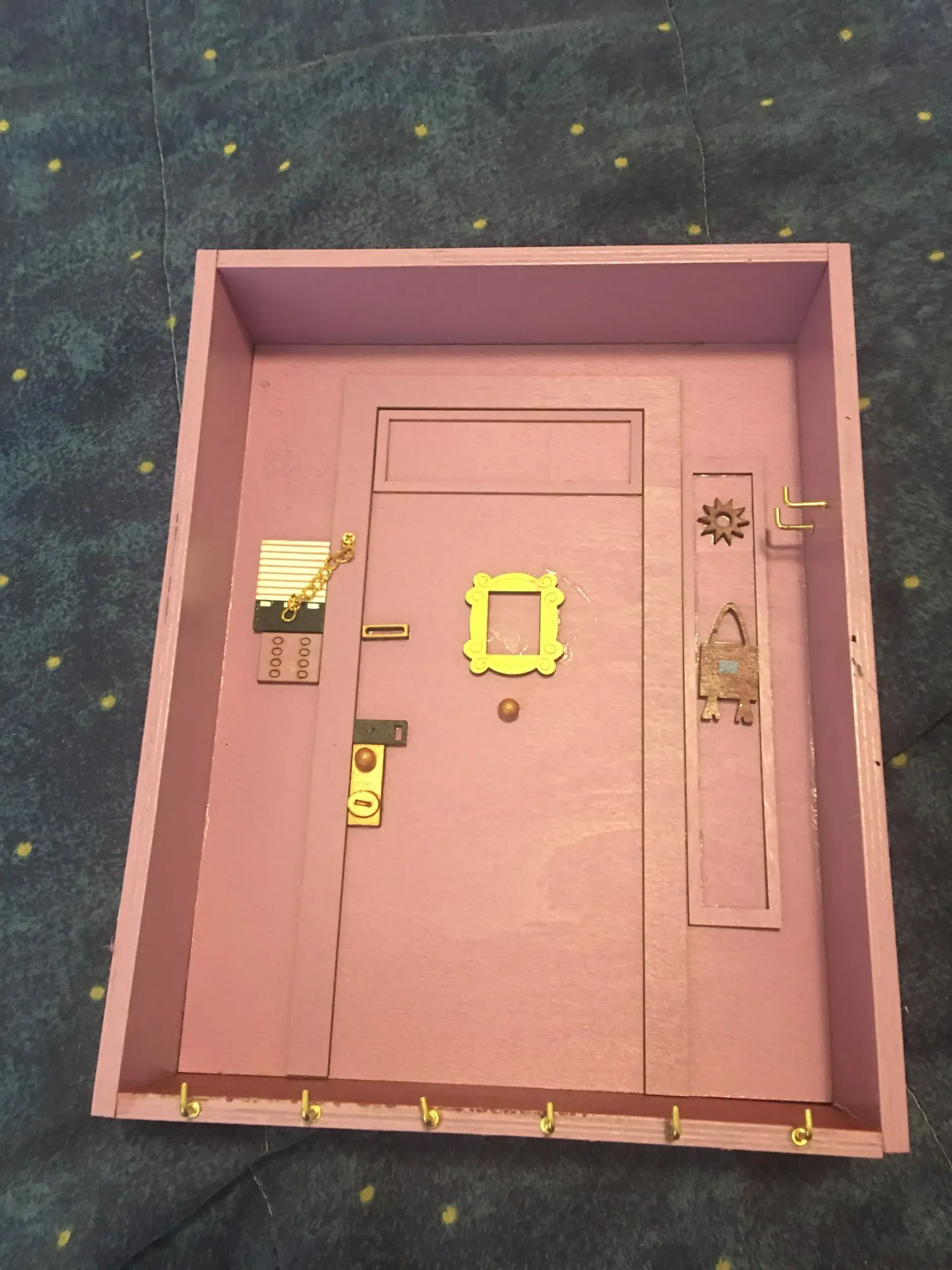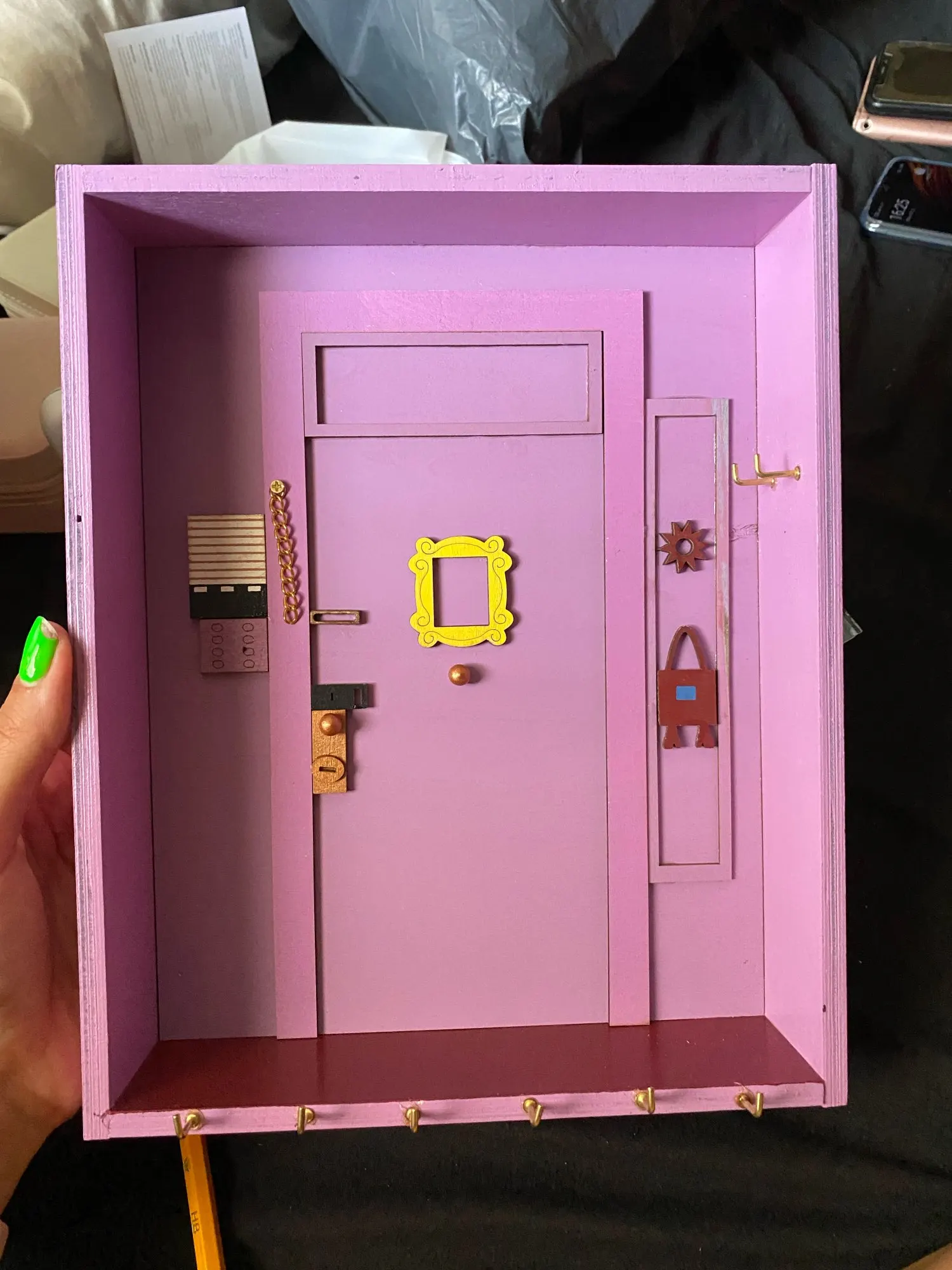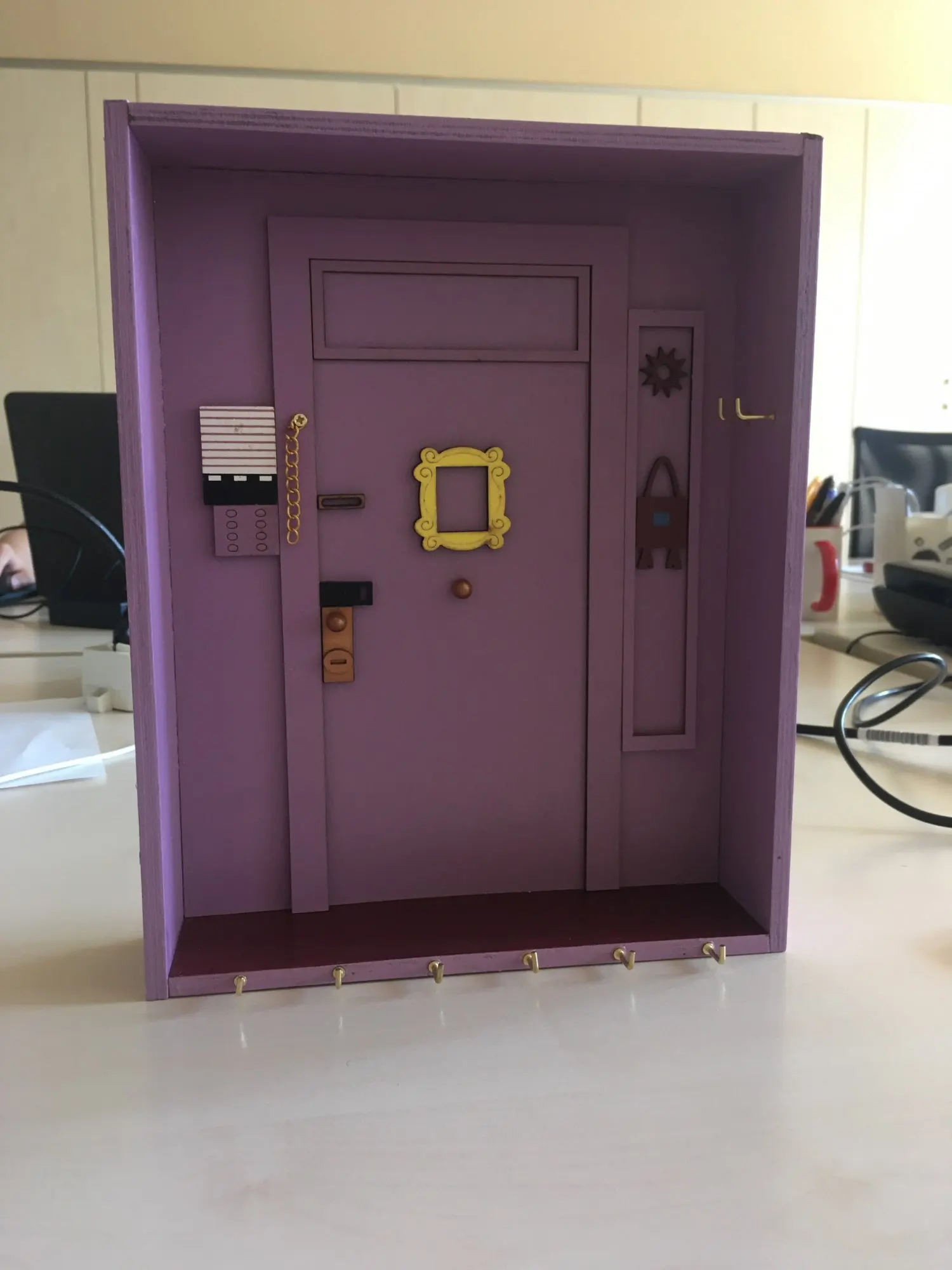 Я большой поклонник друзей, поэтому мне это нравится, но мне нужно было приклеить дверную ручку назад, а также дверной стул. Он изготовлен из довольно тонкой древесины, поэтому может быть не подходит большое количество тяжелых ключей. Прибыл довольно быстро в Новую Зеландию