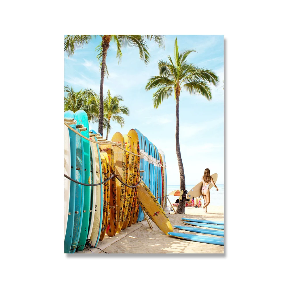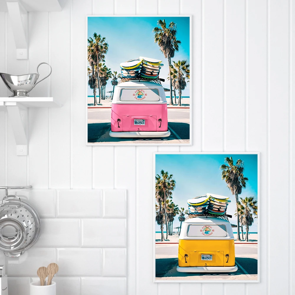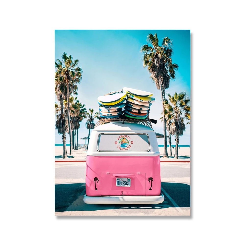 Скандинавский тропический пейзаж, плакаты, современные принты, морской пляж, автобус, доска для серфинга, настенная Картина на холсте, скандинавский декор, картина