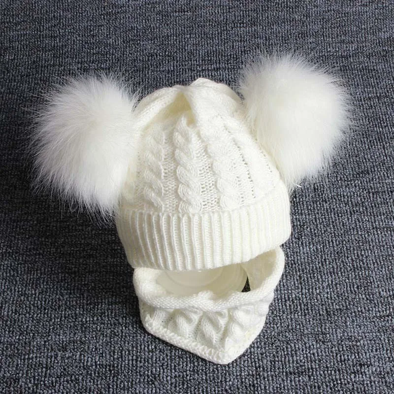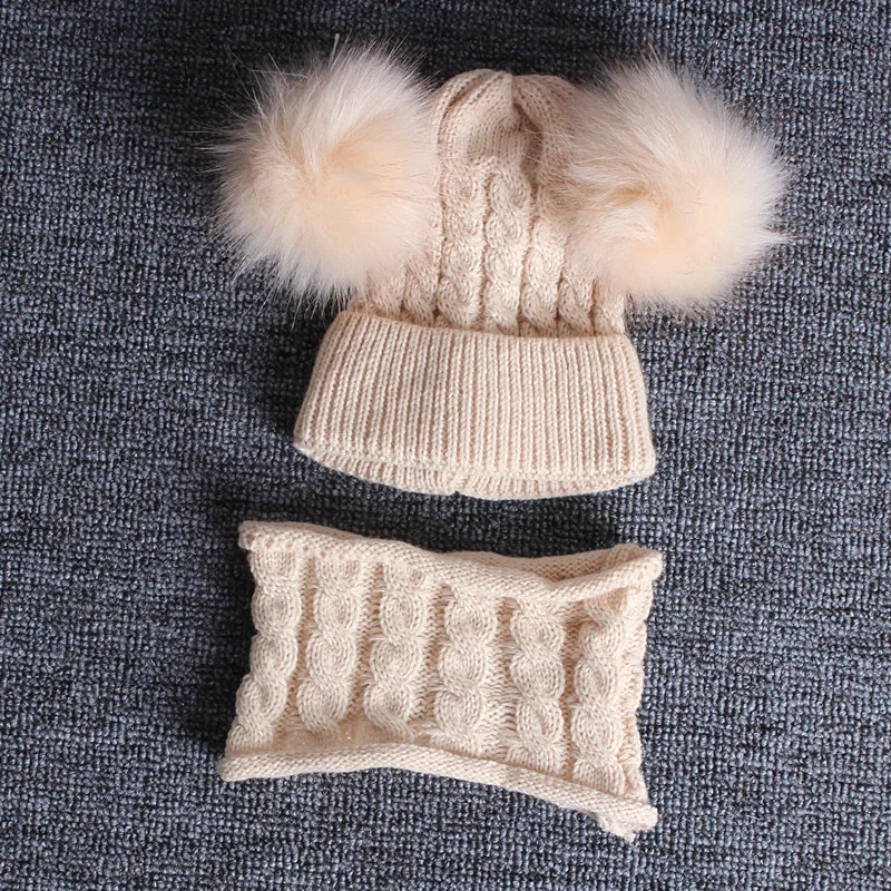2 шт.компл., вязаная детская шапка, шарф с помпоном, милая шапка дл...