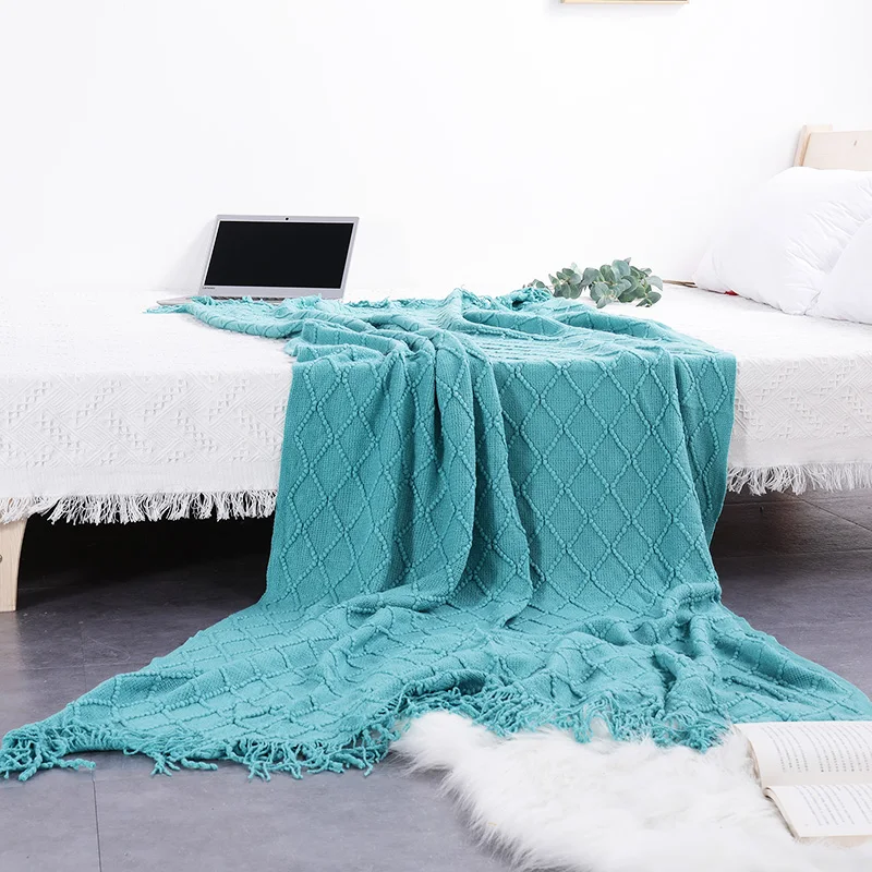 Синий с геометрическим принтом трикотажное покрывало-плед для дивана Полотенца вязаное платье с начесом с бахрома для скатерти гобелен кровать для дома украшения