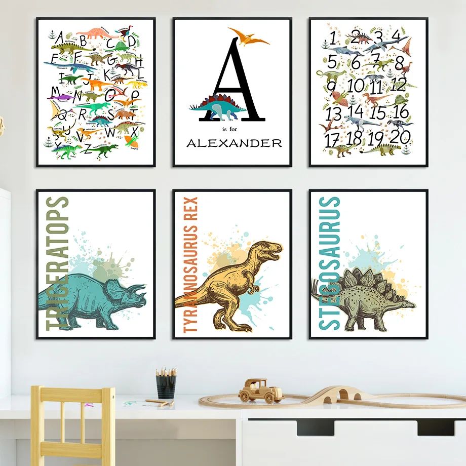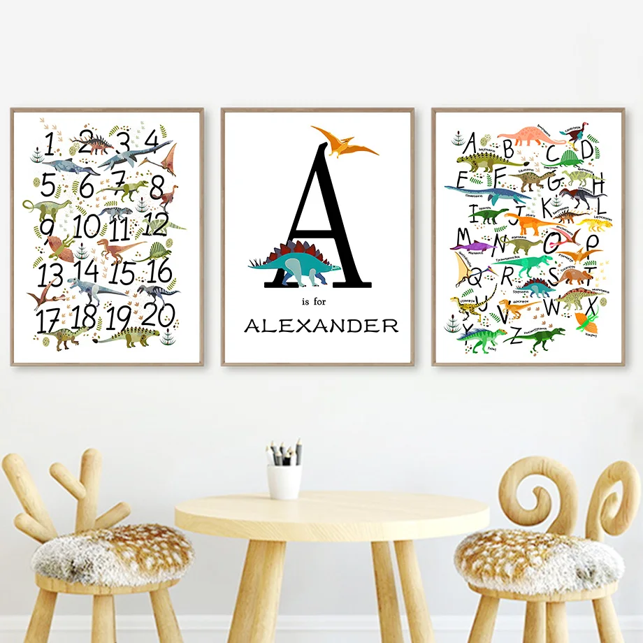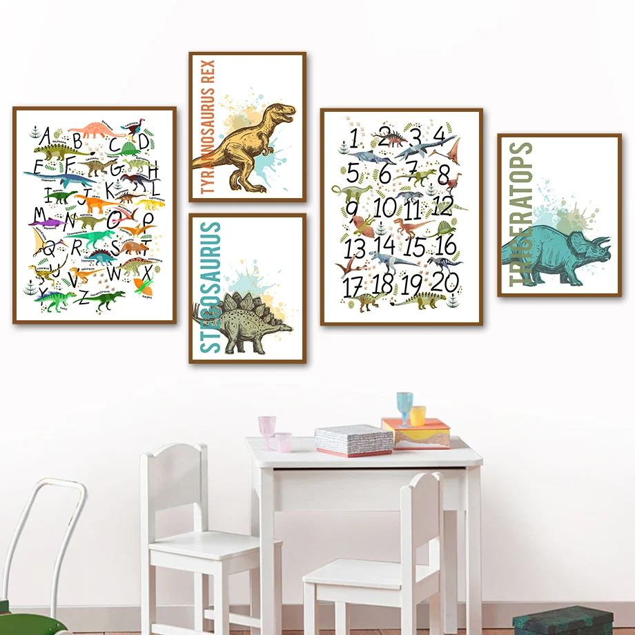 Настенная живопись с цифрами алфавита, динозавр, Обучающие картины ...