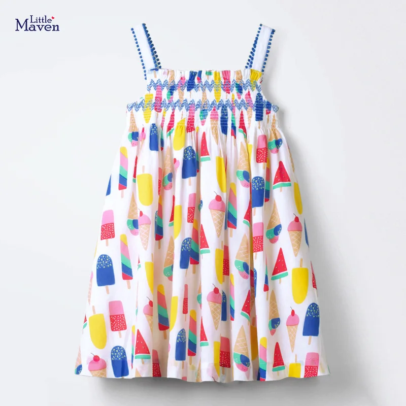 Little Maven2021 летнее платье для девочек; Одежда для маленьких девочек; Милая мороженого без Рукавов Платье с принтом милая детская одежда для девочек; От 2 до для детей 4, 5, 6, 7 лет