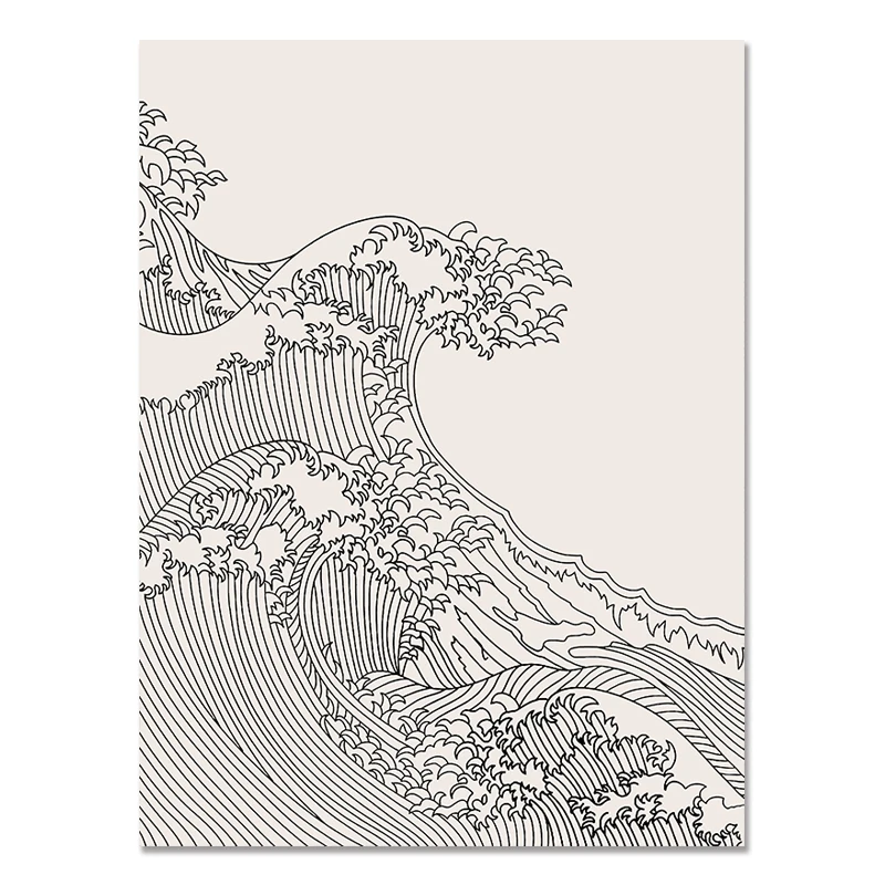 Японский плакат на стену, домашний декор в скандинавском стиле, черно-белый холст, живопись, линии, Абстрактные Волны