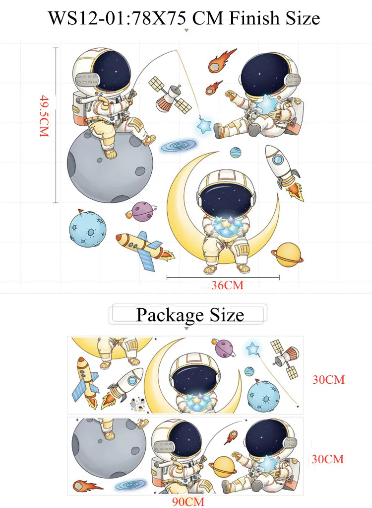 Наклейки на стену в виде космоса, астронавта, детской комнаты, детс...
