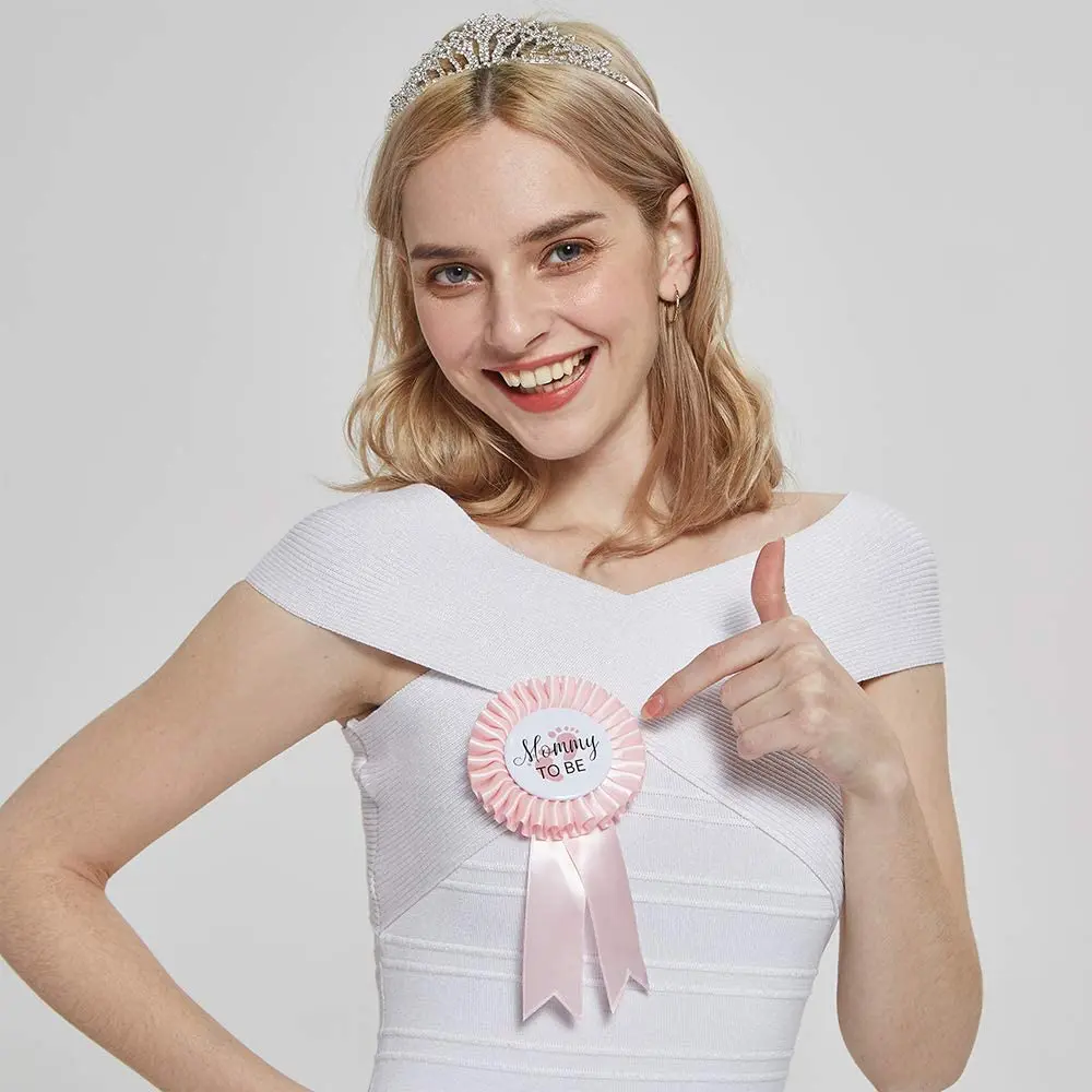Синего и розового цвета для мам и пап, чтобы быть лента значок на булавке для мамы, чтобы быть створки для Baby Shower или для вечеринки по случаю мальчик девочка Baby Shower вечерние украшения пользу подарки