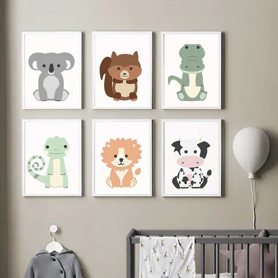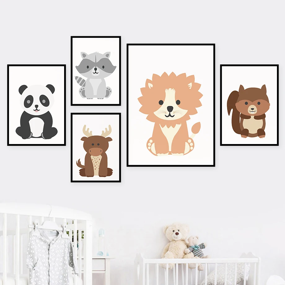 Мультяшная тигра льва панды коала настенная Картина на холсте сканд...