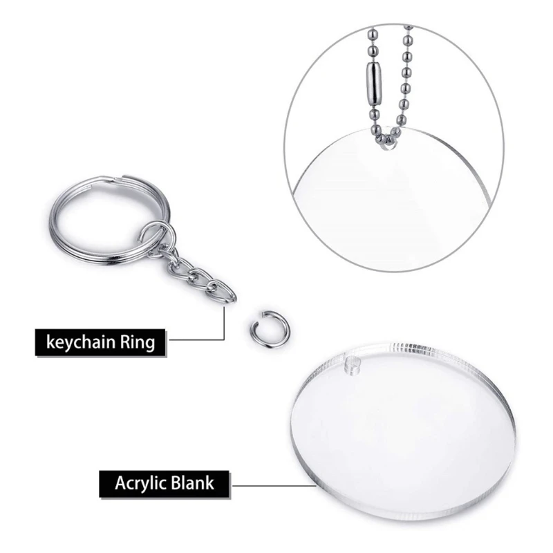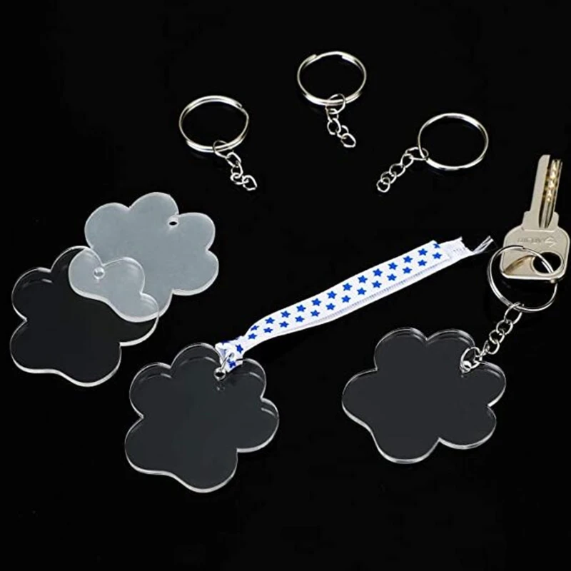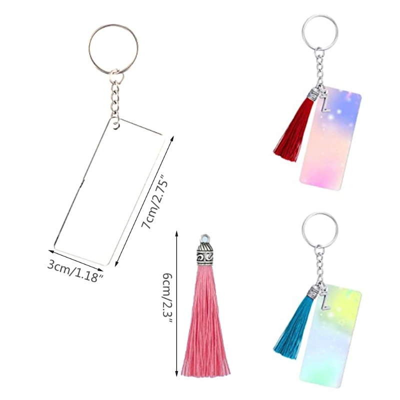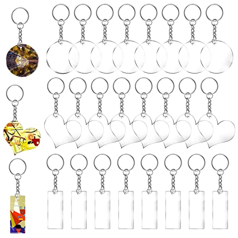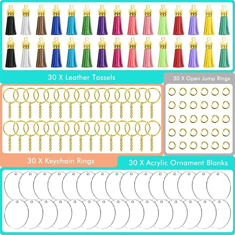 Количество: 30 шт., в том числе 30 шт. акриловых заготовок, 30 шт. кисточек для ключей разных цветов, 30 шт. брелоков с удлинительной цепочкой, 30 шт. колец для прыжков.
