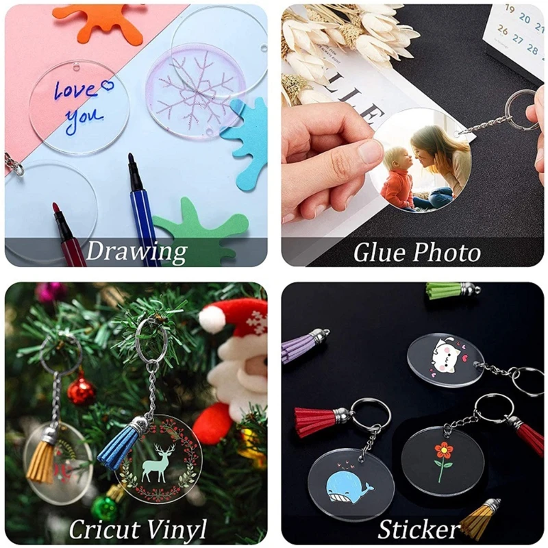 Акриловые брелки заготовки с кольцами для ключей круглые прозрачные диски круги Красочные кисточки Подвески прыгающие кольца для DIY проектовПрактичный набор комбинаций: вы можете выбрать комбинацию свободно, практично в большом количестве, будет легко удовлетворить ваши потребности в создании нескольких DIY и брелоков.Безопасный и прочный материал: Эти заготовки для ключей изготовлены из акрила, легкие и прочные, гладкие и удобные, нетоксичные и не легко выцветают.Дизайн защитной пленки: все заготовки для ключей покрыты защитной пленкой с обеих сторон, которая должна быть очищена, когда вы готовы использовать заготовку; Этот защитный слой защищает сублимационную заготовку от царапин или загрязнений.Внимательный и шикарный выбор подарка: вы можете сделать своими руками или покрасить узоры на поверхностях этих акриловых прямоугольных шармов и повесить кожаные кисточки на брелки, а затем отправить их своим друзьям, членам семьи, близким, коллегам и другим в качестве подарка, им понравятся эти практичные предметы.Набор брелков содержит различные стили инструментов для ключей,В том числе звенья цепи, брелки для ключей, Кожаные Кисточки и так далее (стили, как показано на фотографии), акриловые брелки заготовки только комплект, другие аксессуары демонстрация на картинке не включены.Особенности 1:Материал: акрилРазмер акрила: 5 см/1,97 дюйма (детальный размер, пожалуйста, смотрите фотографии)Цвет: как показано на фотографии