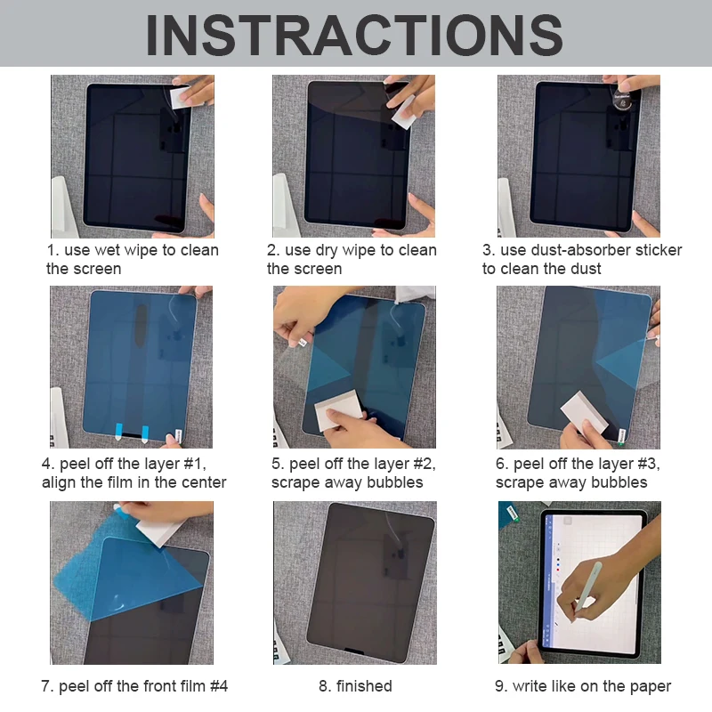 1. Более трудно установить бумагу, как пленку, чем закаленное стекло, и рекомендуется прочитать руководство по установке и видео перед установкой.