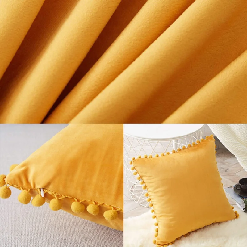 Наволочка с помпоном, 45x45 см, мягкая, бархатная, однотонная подушка
