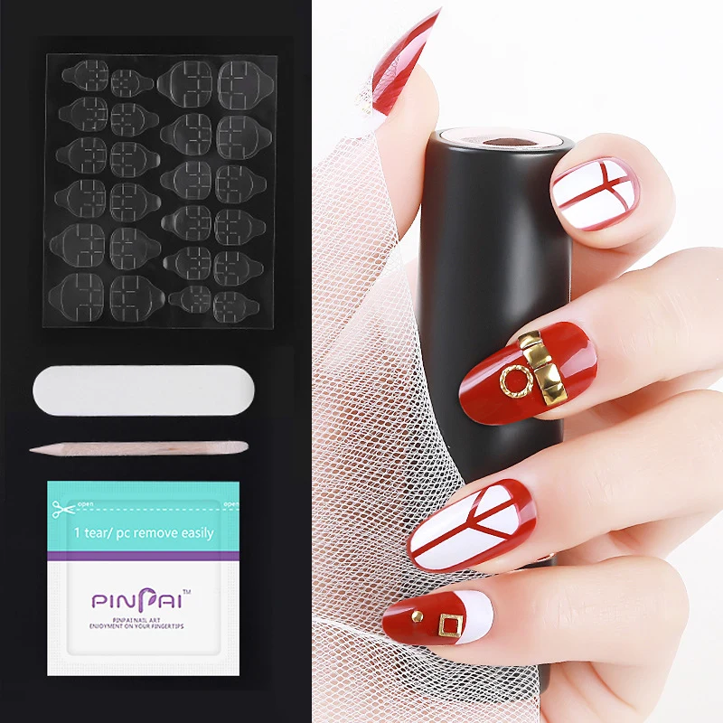 Использование шагов: 1. Очистите кутикулу ногтей 2. Используйте пилку для ногтей для полировки ногтей 3. Очистите ногти 4. Выберите подходящий двухсторонний стикер и Наклейте его 5. Выберите подходящие накладные ногти и Наклейте их 6. Закончено и получите эффект