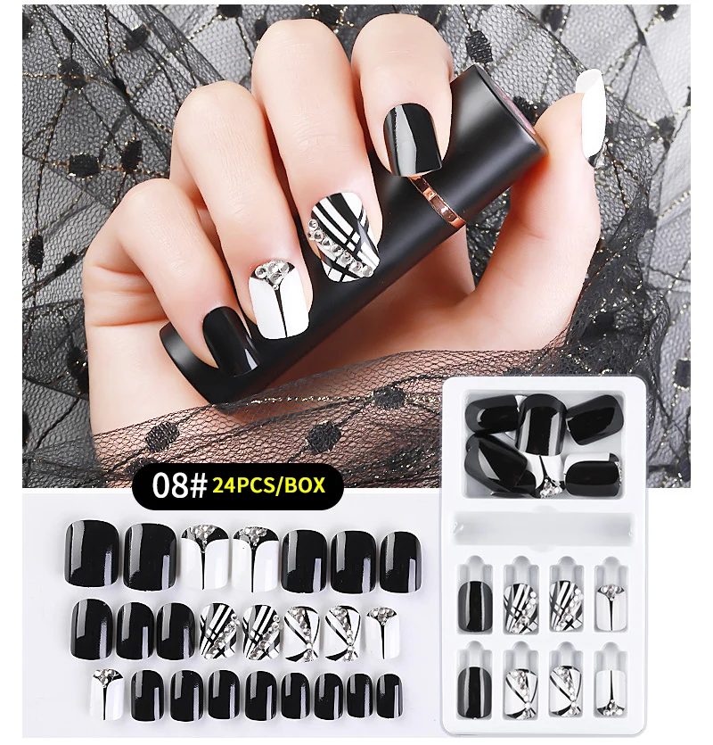 Набор накладных ногтей, 24 шт., искусственные ногти с кристаллами, ...
