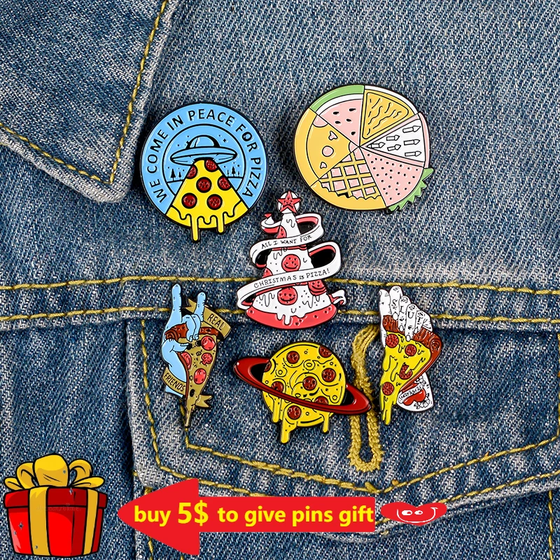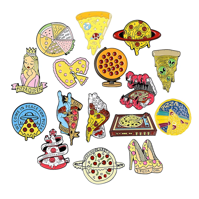 Эмалированная шпилька в виде пиццы, Шпилька для лацкана в виде планеты, Веселый Готический металлический значок, ювелирные изделия, подарок для друзей, оптовая продажа