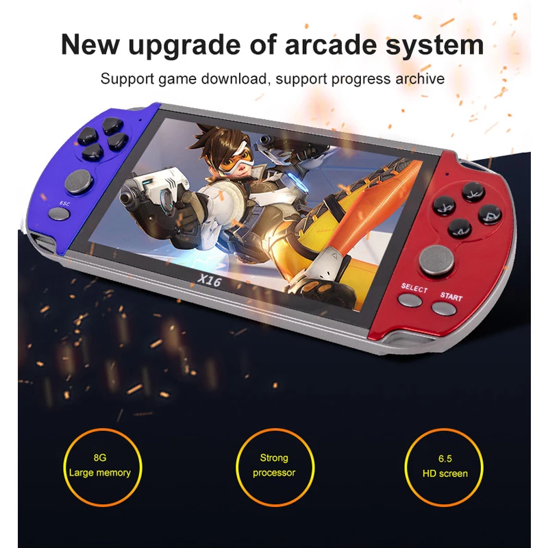 Игровые приставки X16 с картой памяти 64 ГБ, игровая консоль 6,5 дюйма, портативный игровой плеер для портативных игроков