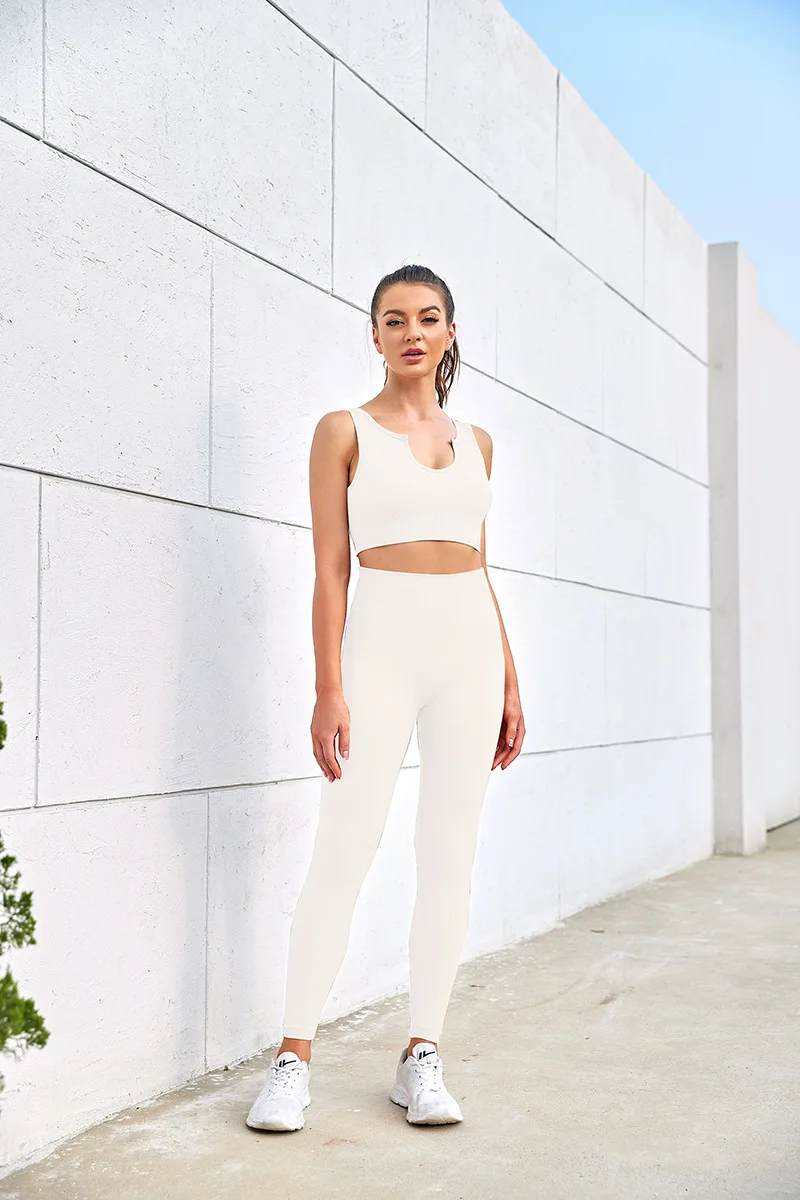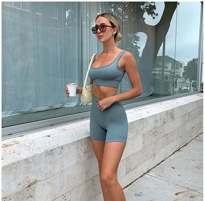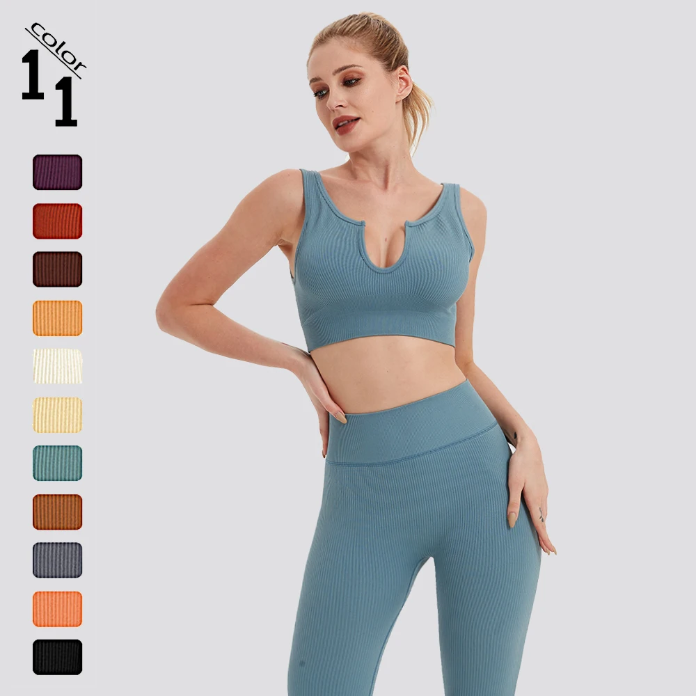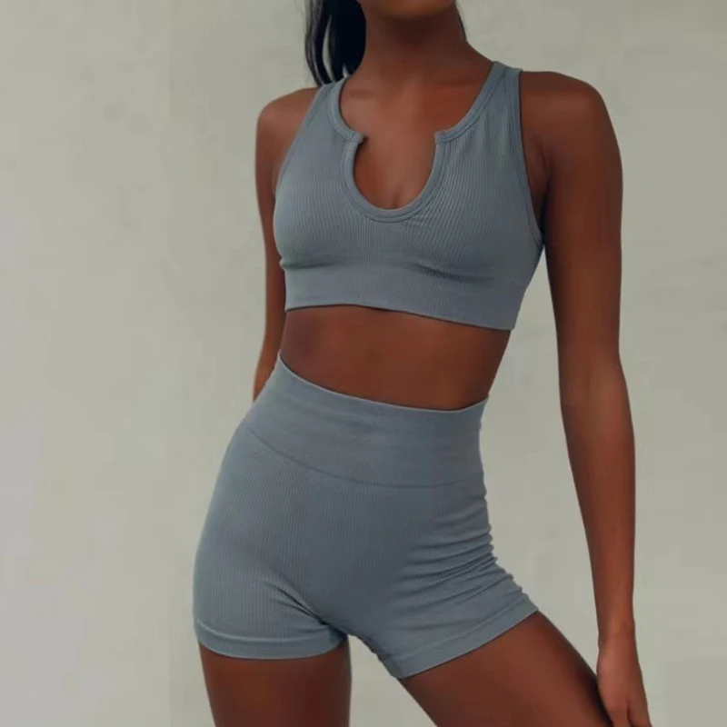 Бесшовный спортивный комплект для женщин из 2 предметов, короткий топ, бюстгальтер, шорты, тренировочная одежда, трикотажный спортивный костюм в рубчик, женские комплекты для йоги, одежда