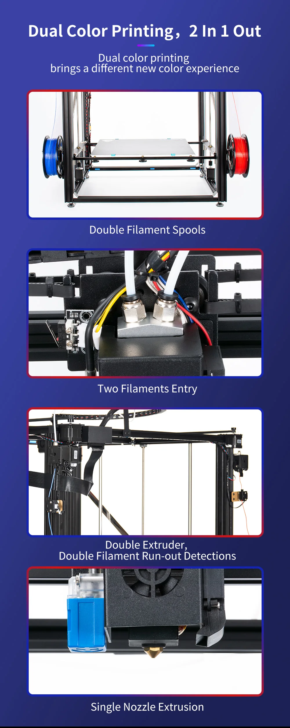 Размер печати: 500*500*600 ммДвойная цветная печать