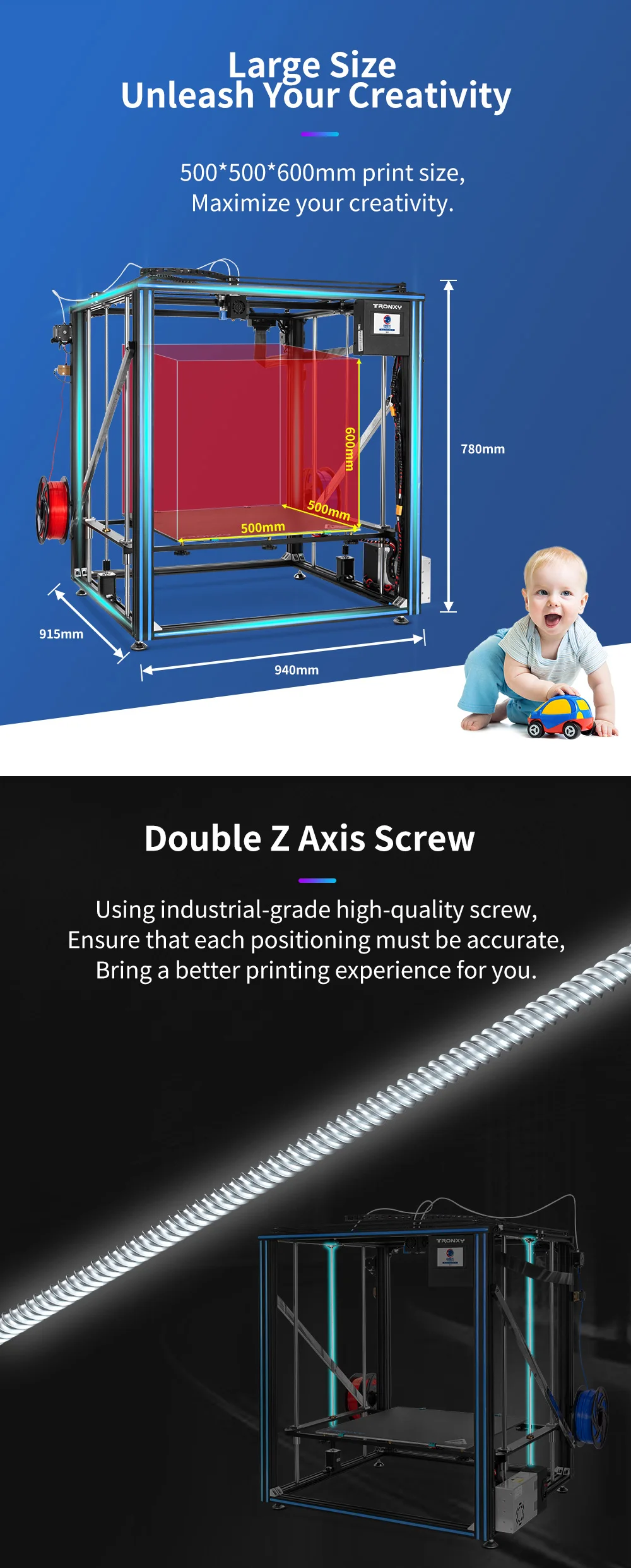 3D принтер Tronxy X5SA-500 2E, 3D принтер, размер печати 500*500 мм, с двойным Экструдером, комплекты 3d сделай сам, двухцветный принтер