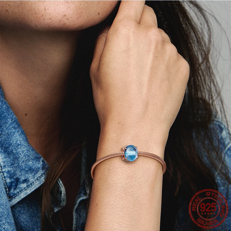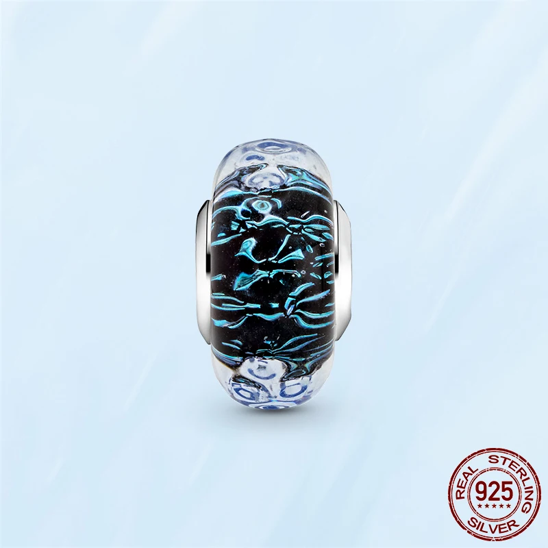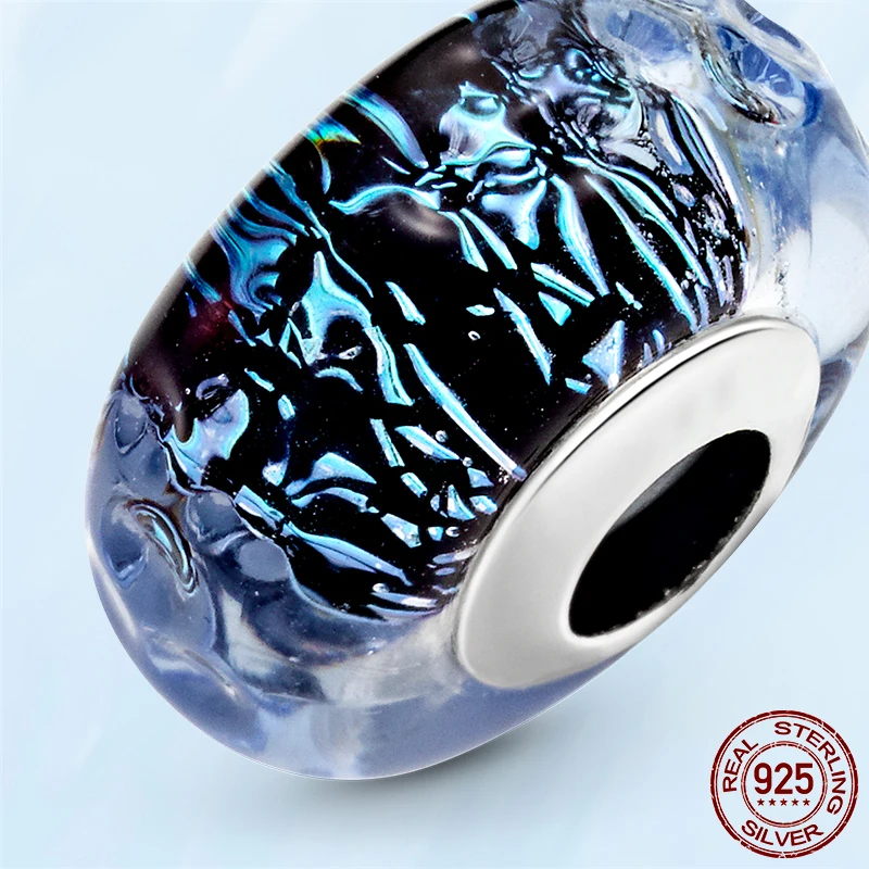 Овальный Кабошон из муранского стекла серебряного цвета, подвеска для браслета Pandora, серебро 925 пробы, изготовление ювелирных изделий