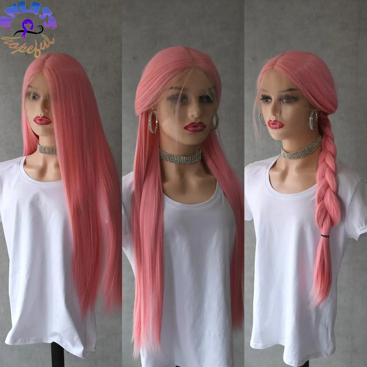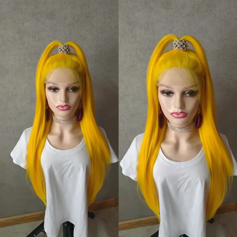 Синтетический парик для женщин, Длинные прямые мягкие волосы, синий, цвет блонд, желтый, серый, красный, оранжевый, для косплея, волосы, парик