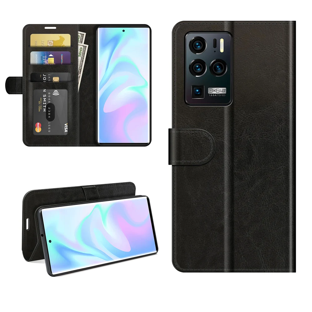 R64 кожаный чехол-бумажник с подставкой из искусственной кожи + ТПУ чехол для ZTE Axon 30/30 Pro /30 Ultra/Libero 5G