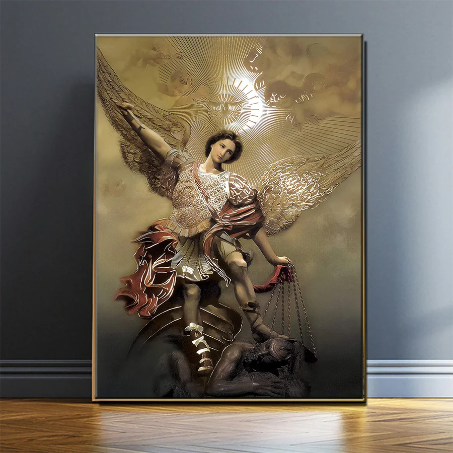 Камни в форме ромба Набор для рисования с круглыми камнями и полотном картина со Святым Майкл Архангел Алмазная вышивка 5D Стразы мозаика алмаз инкрустированные узор Декор
