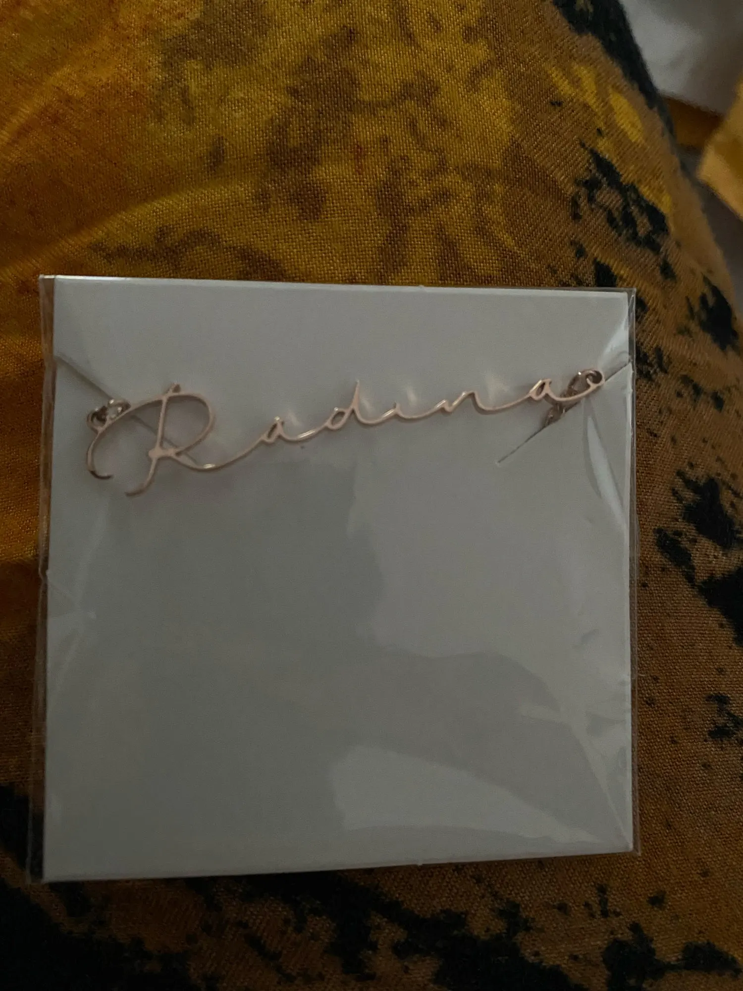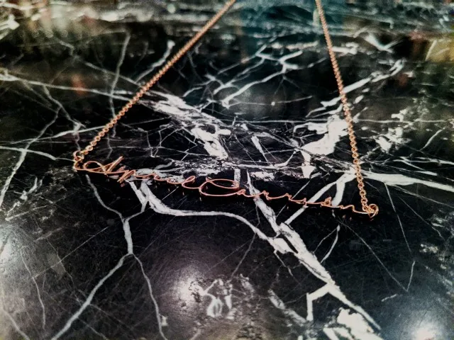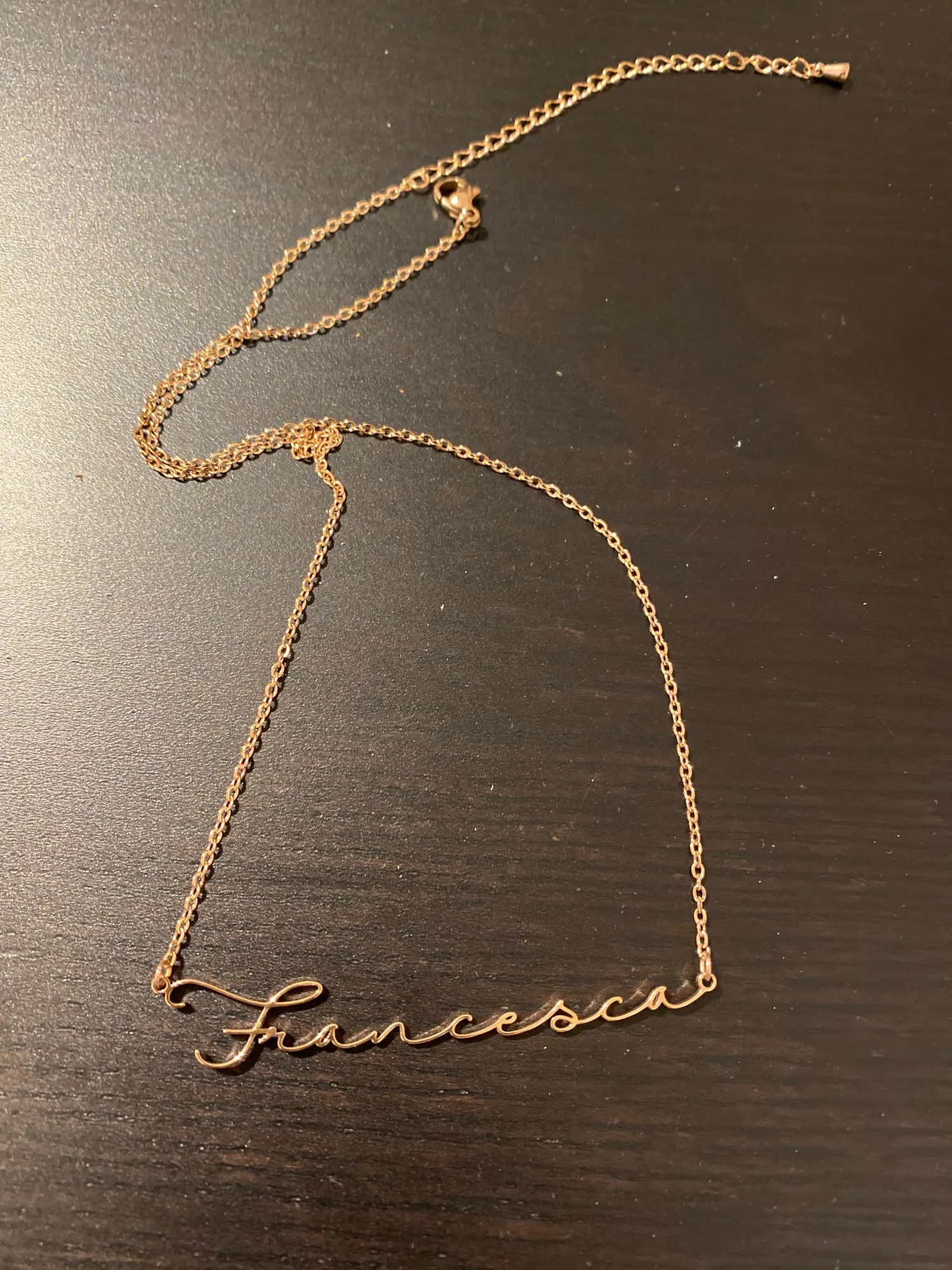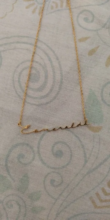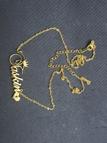 Ожерелье красивое и хорошее качество изготовления. Шрифт написан очень красиво и соответствует описанию. Написание слишком большое. Я-результат более сдержанного и что в результате написанное имя было меньше и коротко