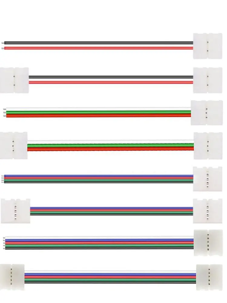Разъемы этого провода предназначены для полосок ширина платы PCB10 ммПодходит дляRgb/rgbw / rgbww цвет 5050 3528 2835 светодиодные лентыL/T форма и X форма соединителя пришли в разобранной форме, пожалуйста, Объедините, чтобы сделать это самостоятельно!