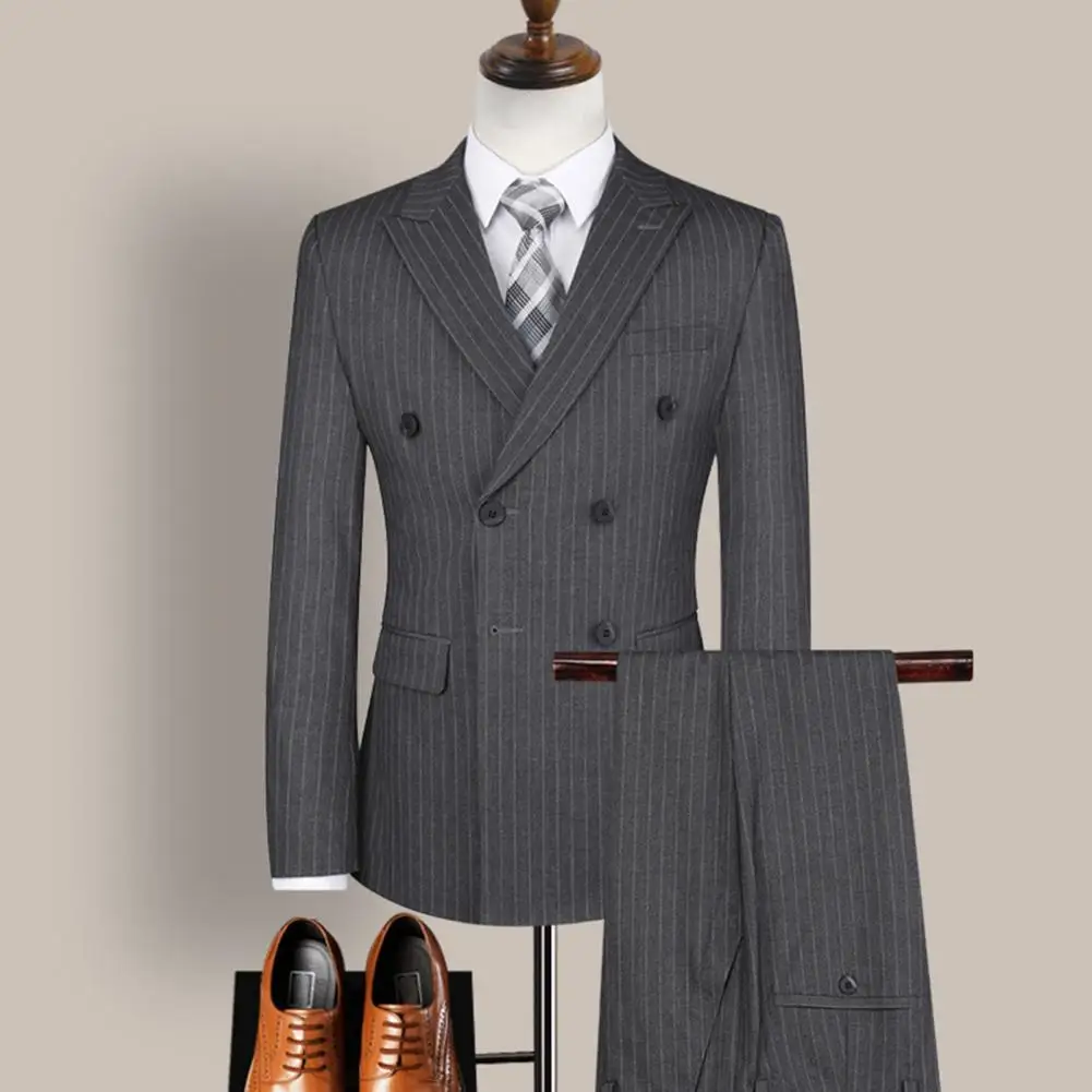 Мужской двубортный костюм в полоску с лацканами, деловой Блейзер и брюки, комплект из двух предметов для свадьбы