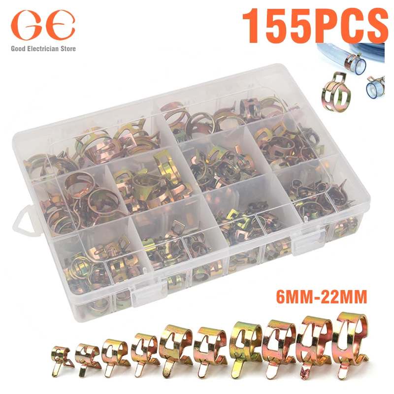 155 шт. 6-22 мм машинок с дистанционным управлением Пружинные зажимы мазута водяной шланг клип трубы крепежа зажима кабельные наконечники в наборе для зажимы зажим зажимы