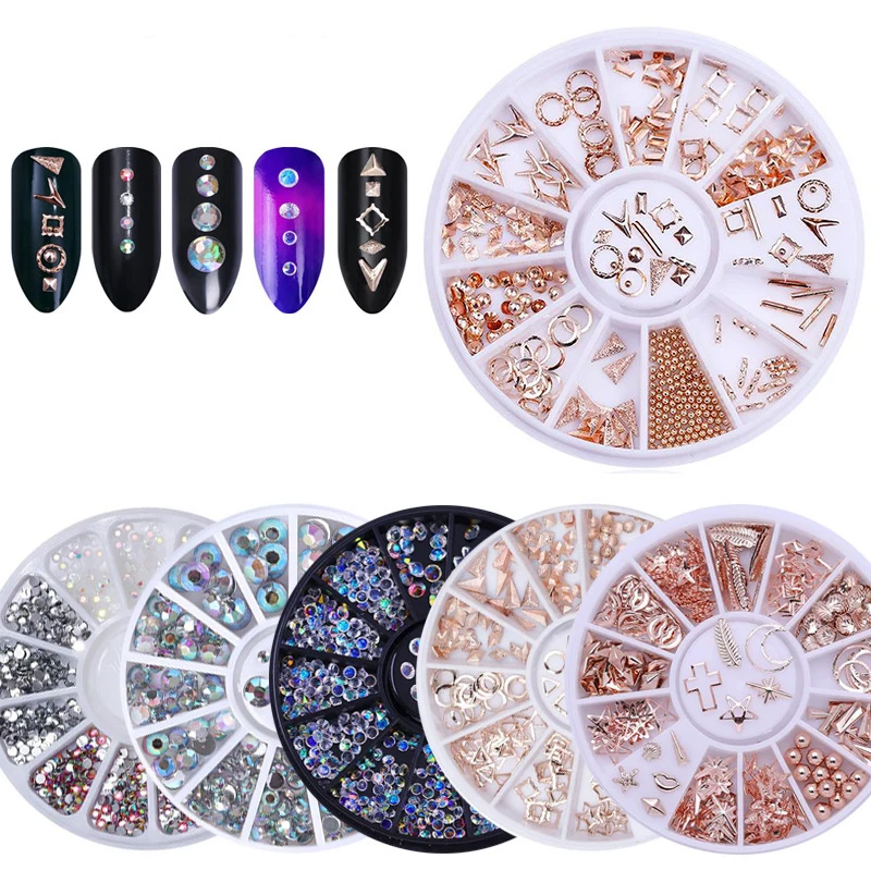 1 коробка ногтей Стразы Золотой Серебряный кольца с цветным 3D с украшением в виде кристаллов самодельные Украшения, Аксессуары Украшения ваших ноготков в колеса