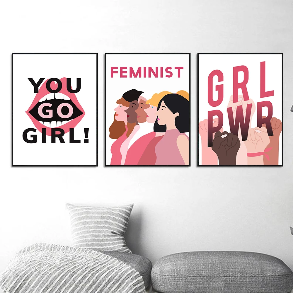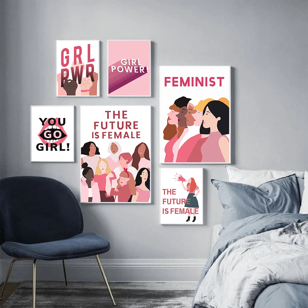 Феминистская детская живопись, девушка, сила руки, настенная Картина на холсте, женские подарки, современные картины для гостиной