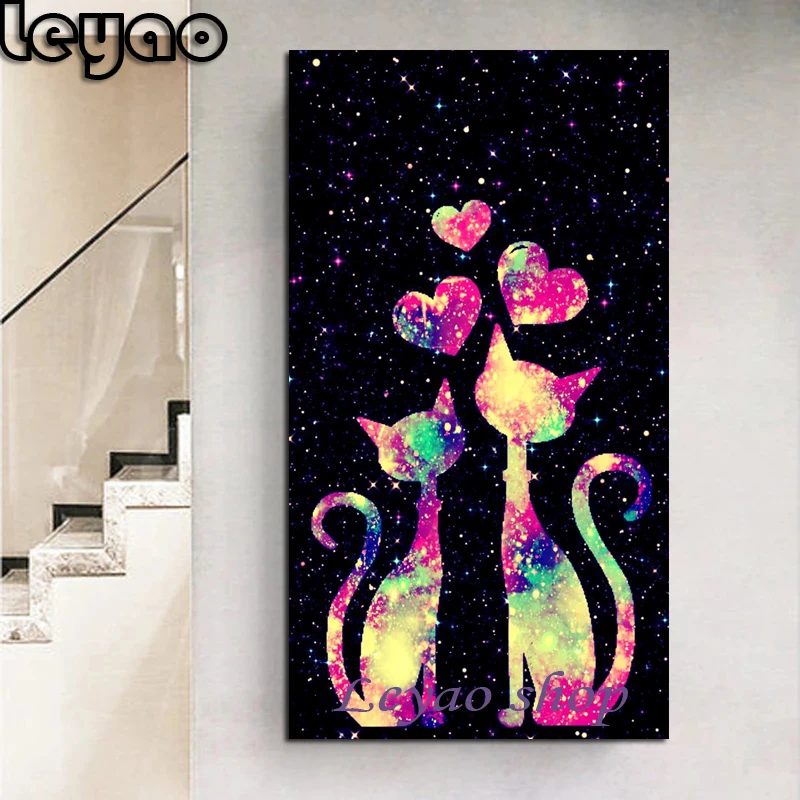 5d DIY Алмазная картина красочное кошачье сердце 5D DIY Роза полная квадратная/круглая бриллиантовая вышивка звездное небо домашний декор наборы для поделок