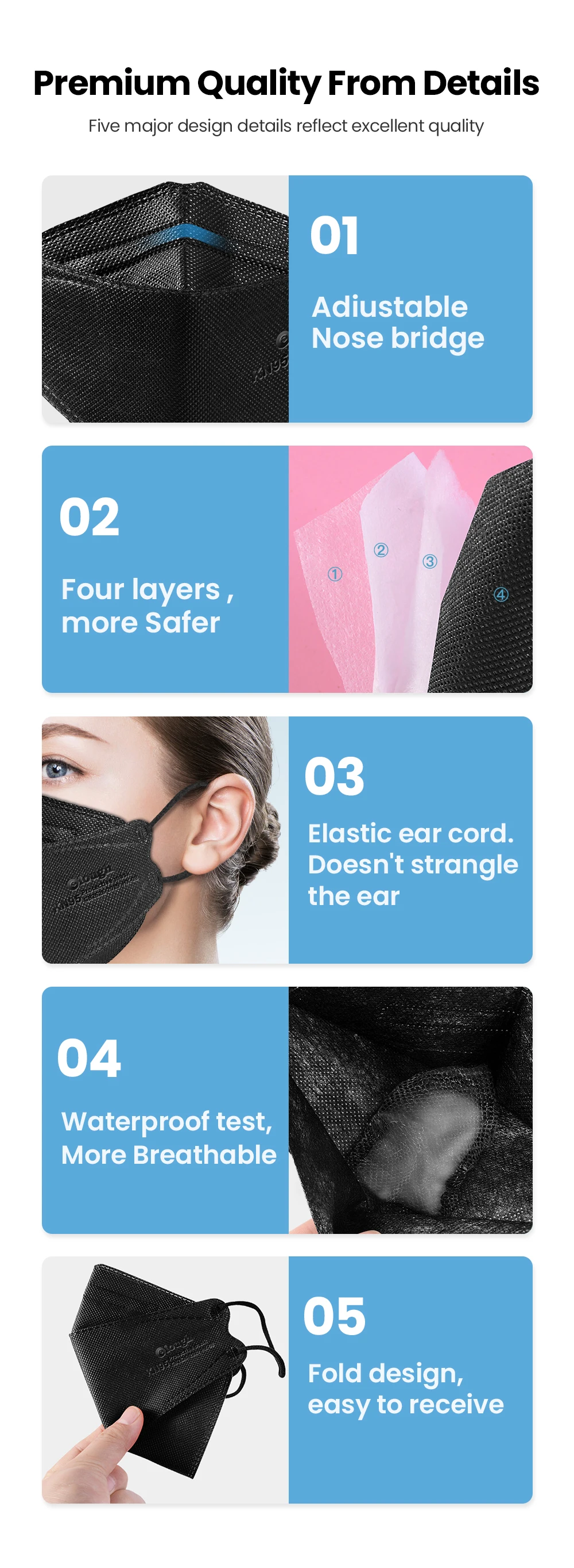 Elough ffp2mask Black kn95 mascarillas neгра для взрослых CE 0370 f...