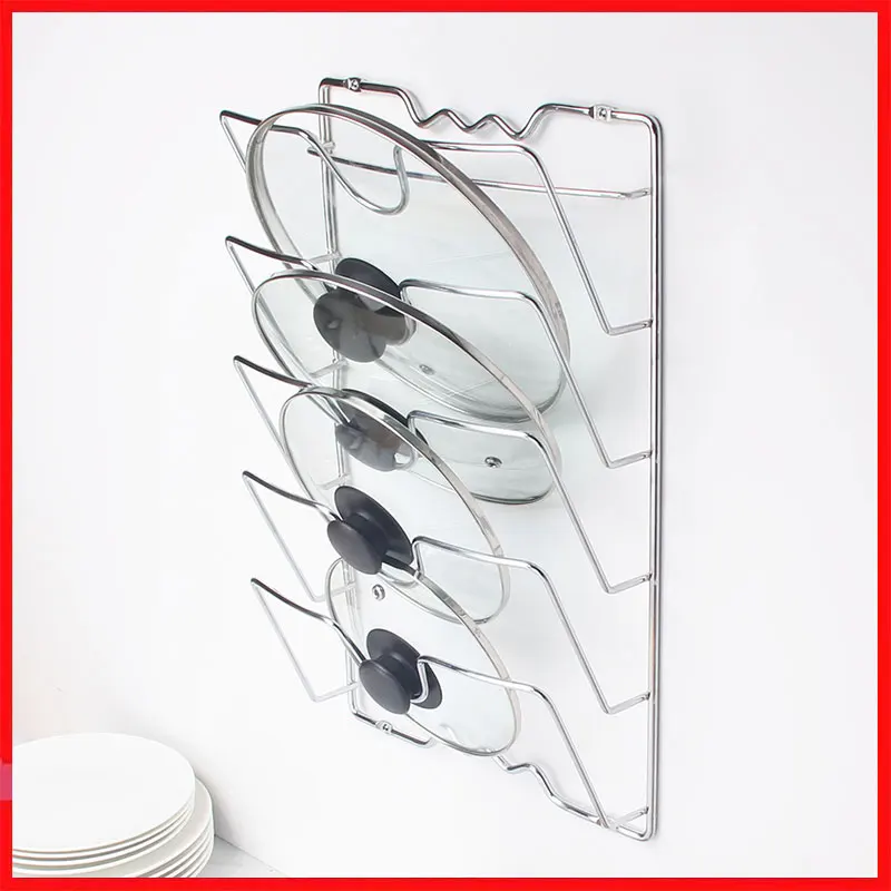 Эта кухонная полка может хранить до 5Различные крышки кастрюль в то же время, помогая вам сохранить вашу кухнюПространства и аксессуары аккуратные.