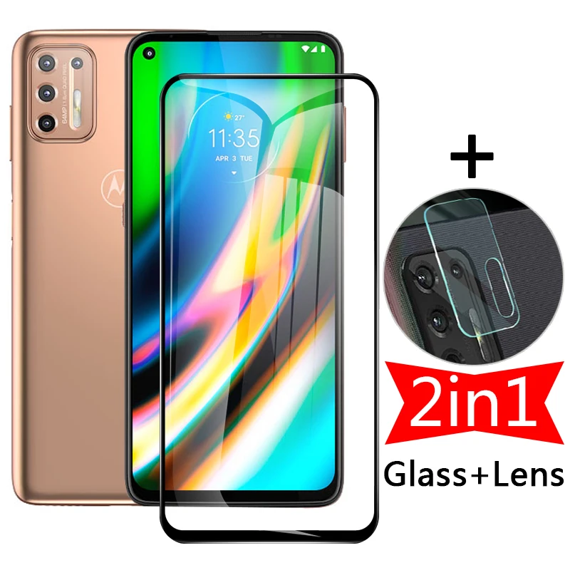 2 в 1 защитное стекло на весь экран для Motorola Moto G9 Plus Защит...