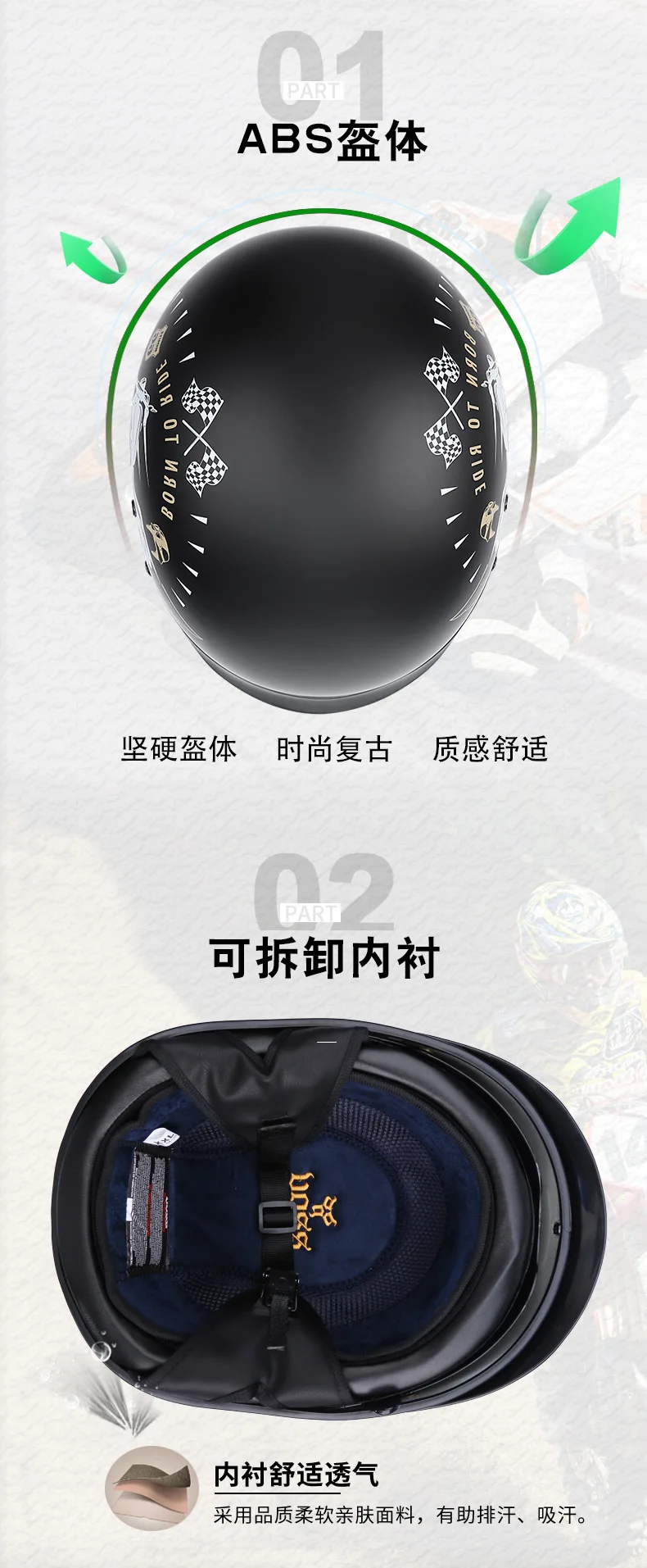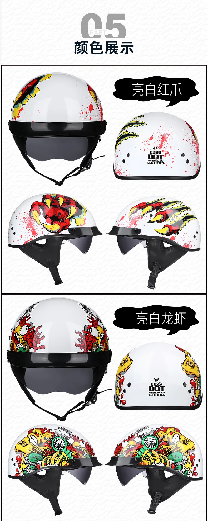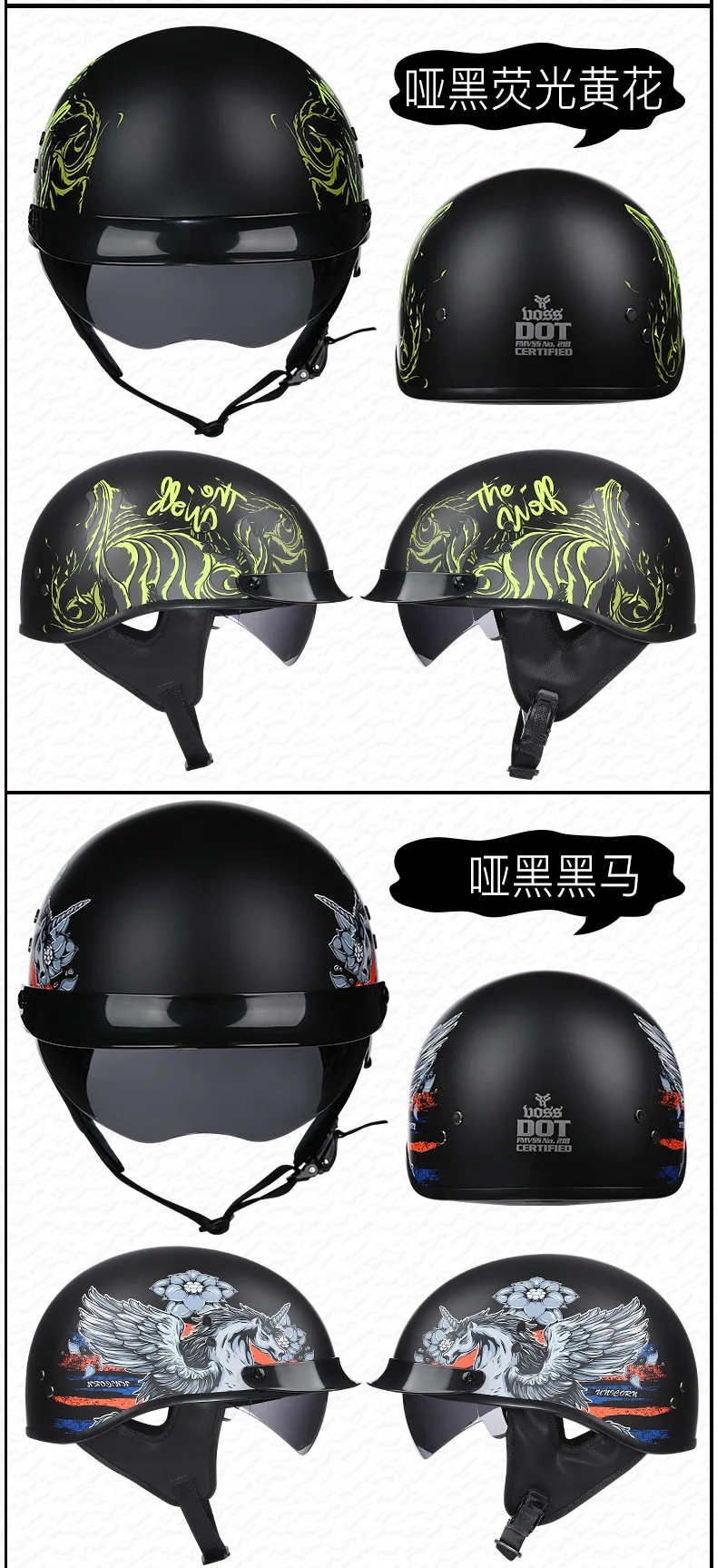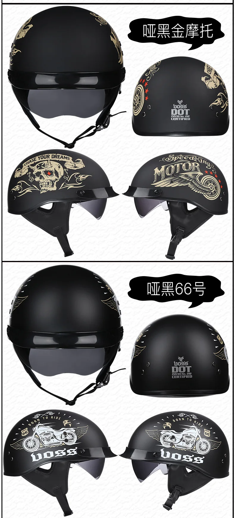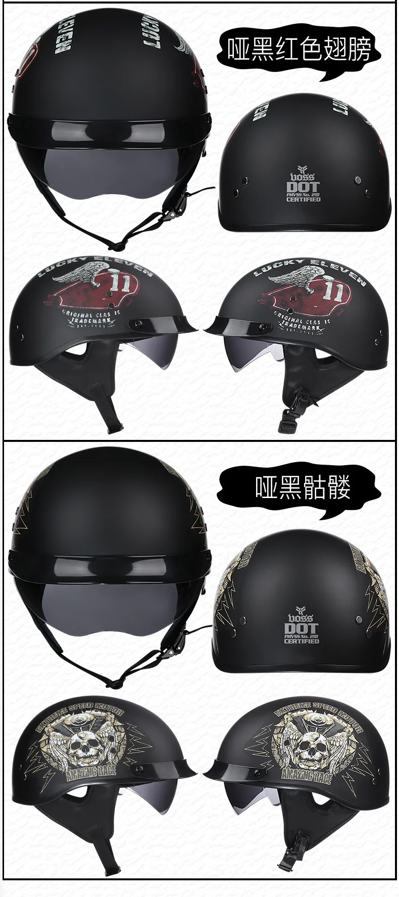Мотоциклетный шлем в винтажном стиле, мотоциклетный шлем с открытым лицом, в горошек, черный, для мотоциклов