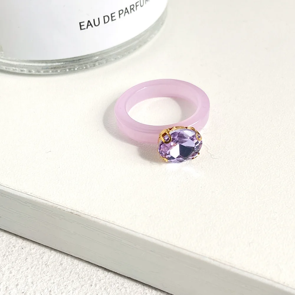 Акриловое кольцо с квадратными стразы женские пластиковые кольца из смолы Новинка 2021 модные ювелирные изделия Y2K в стиле 90-х Harajuku подарки для девушек